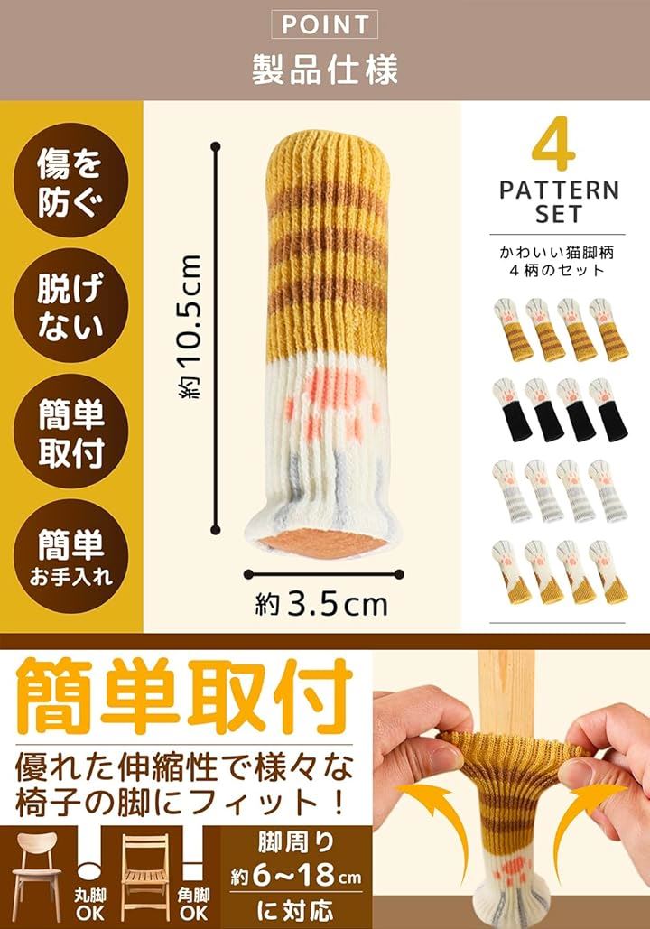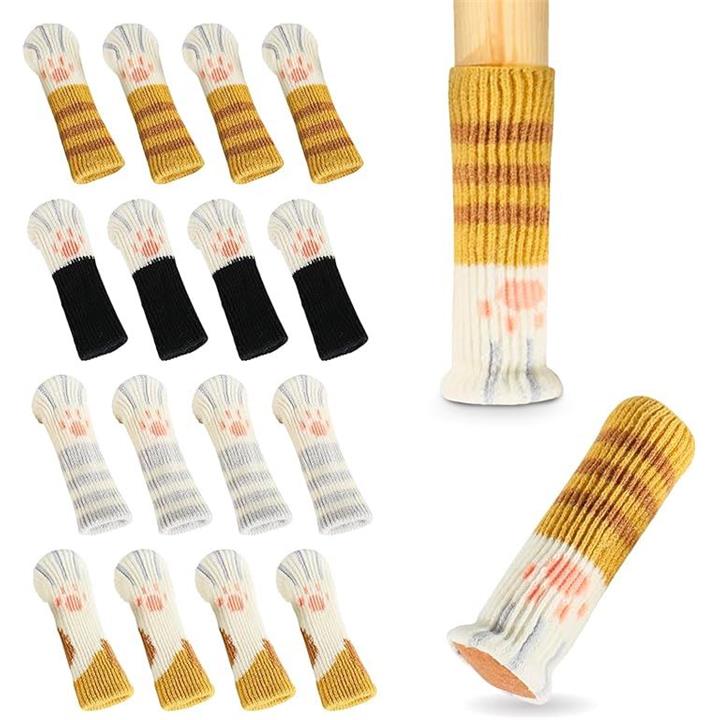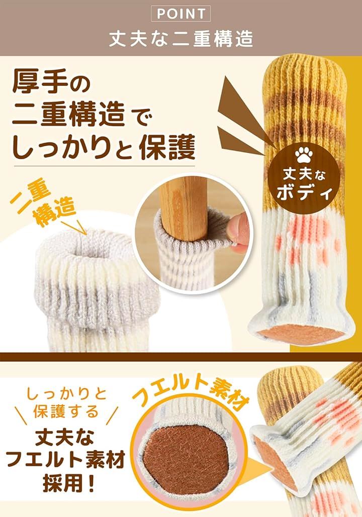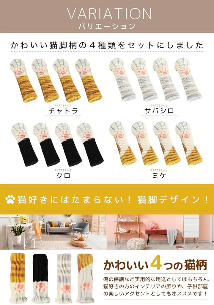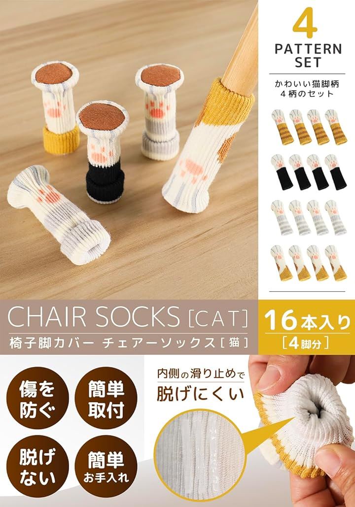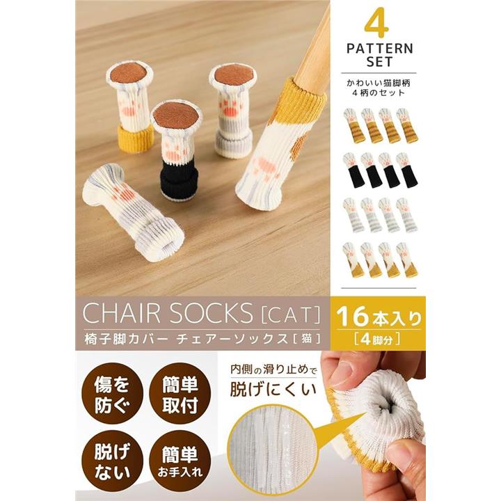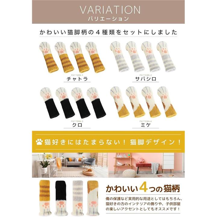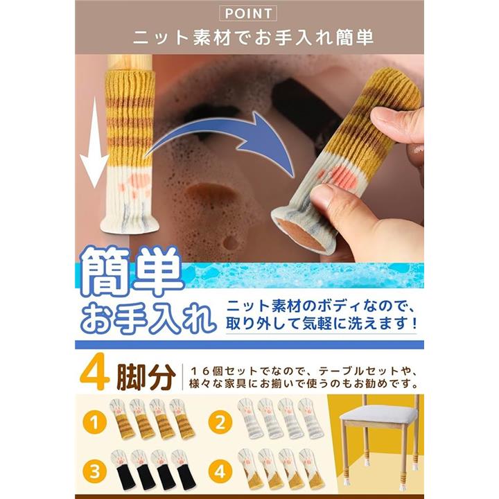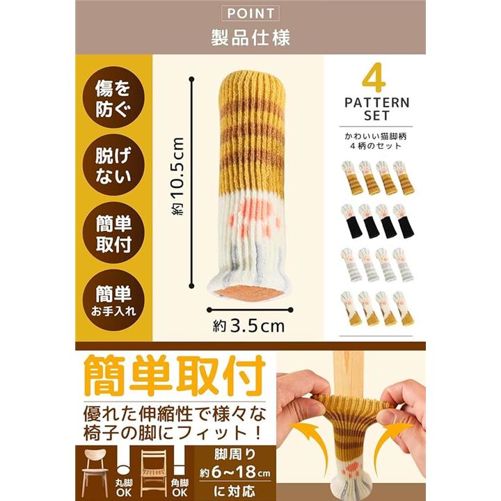 Next Joy 椅子脚カバー 猫 チェアソックス 内側にシリコン付き 猫足フェルト 16個入り