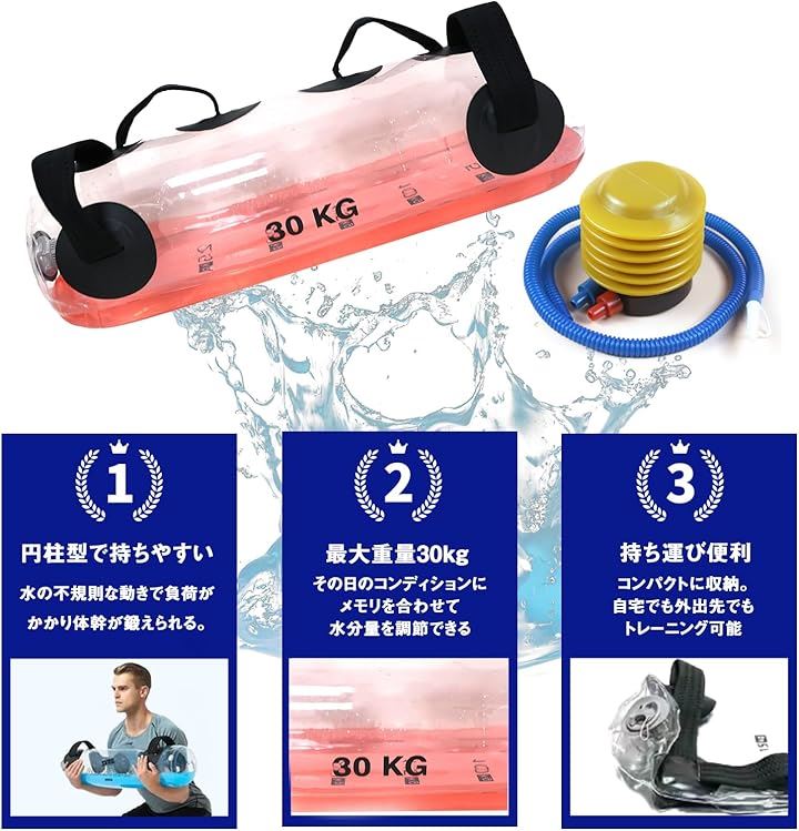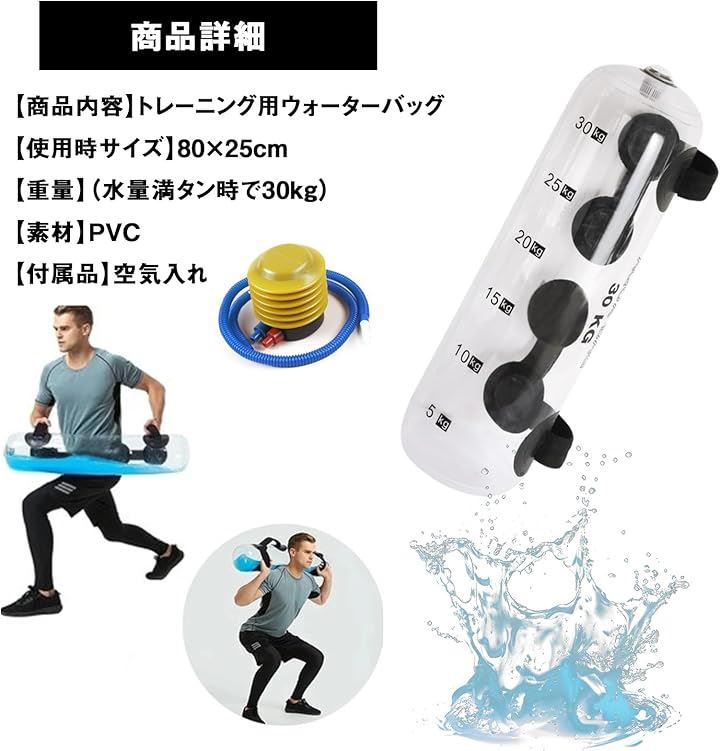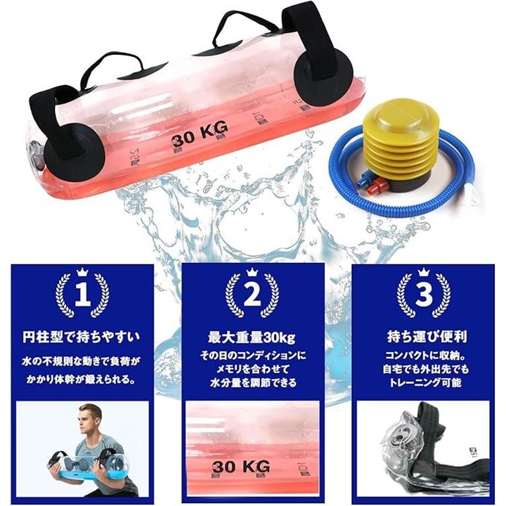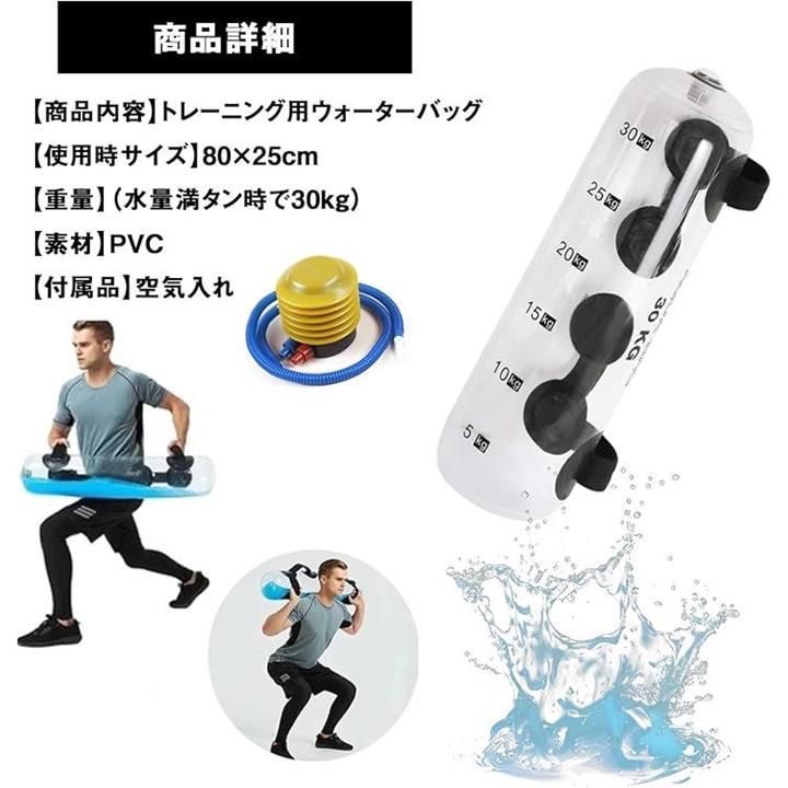 ウォーターバッグ 筋トレ バランス感覚 体幹トレーニング 宅トレ スクワット 下半身強化 重量 水量調節 目盛り付き~30kg