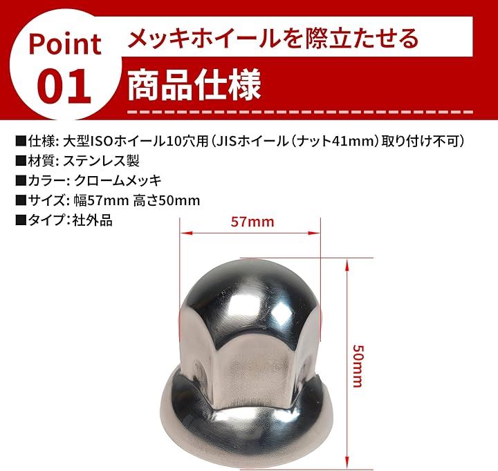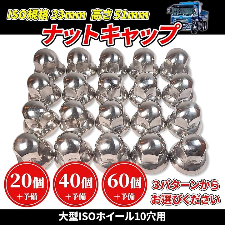 互換品 ナットキャップ ステンレス製 カバー 鏡面仕上げ ISO 33mm 高さ46mm 丸型 大型 10穴用 トラック ダンプ デコトラ カスタム ドレスアップ 汎用品