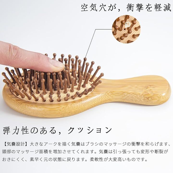 ミニヘアブラシ ミニパドルブラシ 竹製 持ち運び 頭皮マッサージ レディース メンズ 絡まない 静電気防止 艶髪