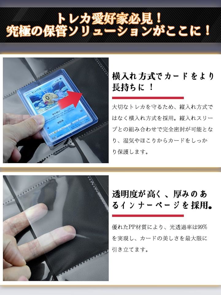 カードファイル 横入れ収納 大容量 トレカ カードアルバム 9ポケット 防水PU素材 ファスナー付き バインダー トレーディングカードホルダー カードケース ポケカ