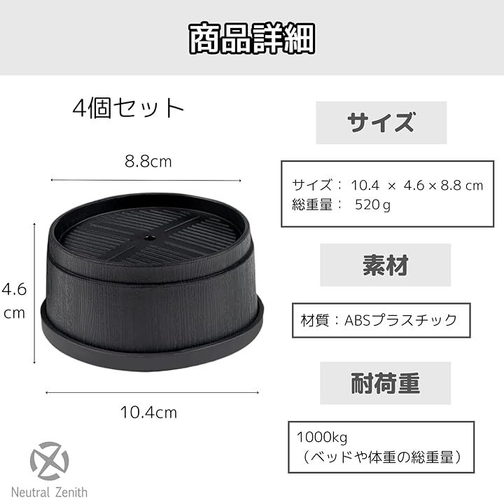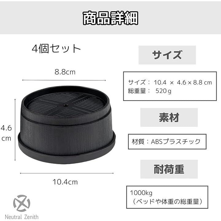 テーブル 高さ調整 ベッド 高さを上げる コタツ 継ぎ脚 テーブル脚台 耐荷重1000kg 丸型 重ね合わせ使用可能 ブラック 高さ4cm