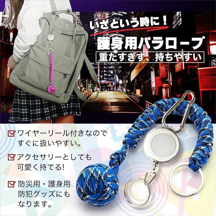 パラコード ストラップ 防犯 グッズ 護身用 カラビナ キーホルダー 女性 子供