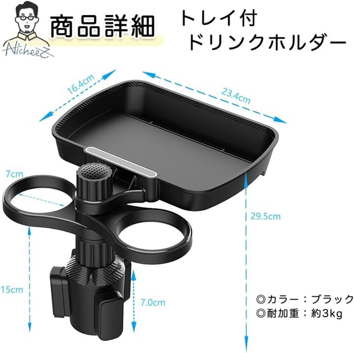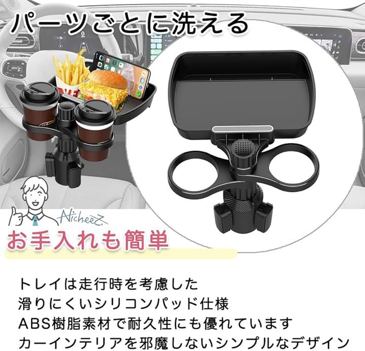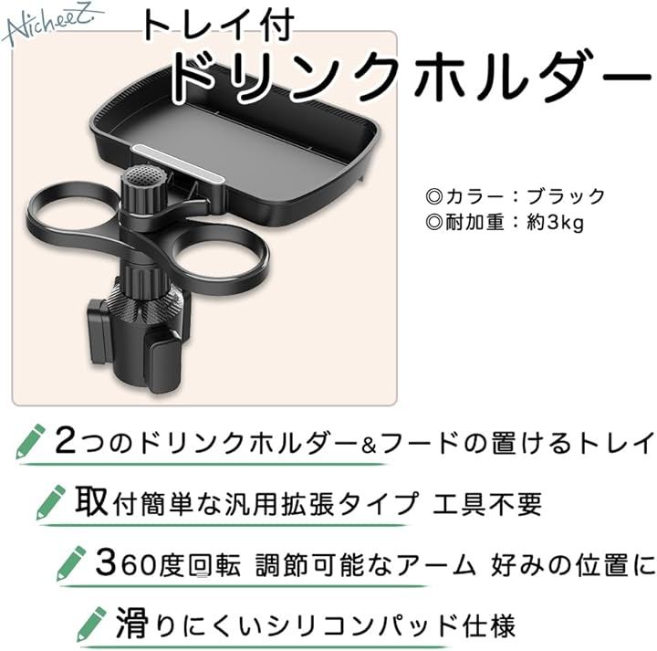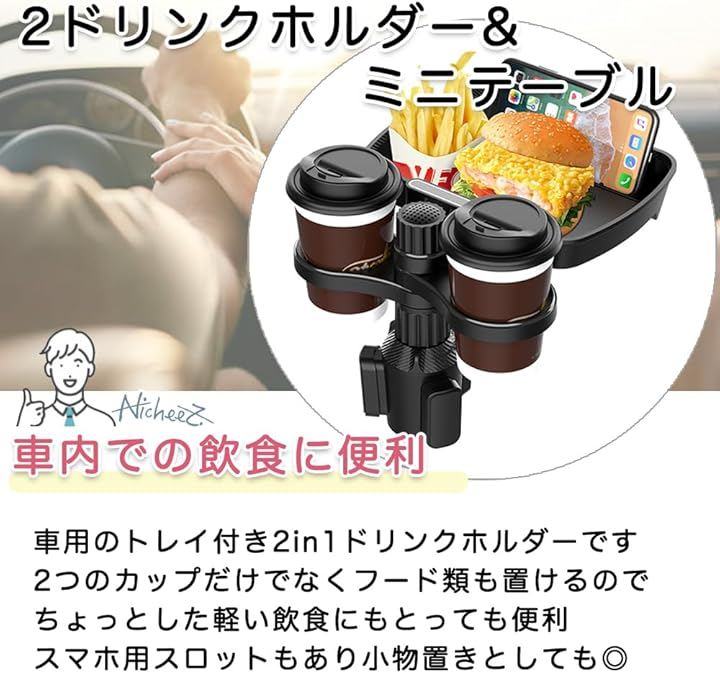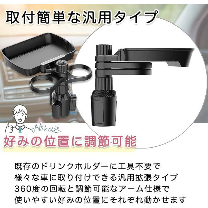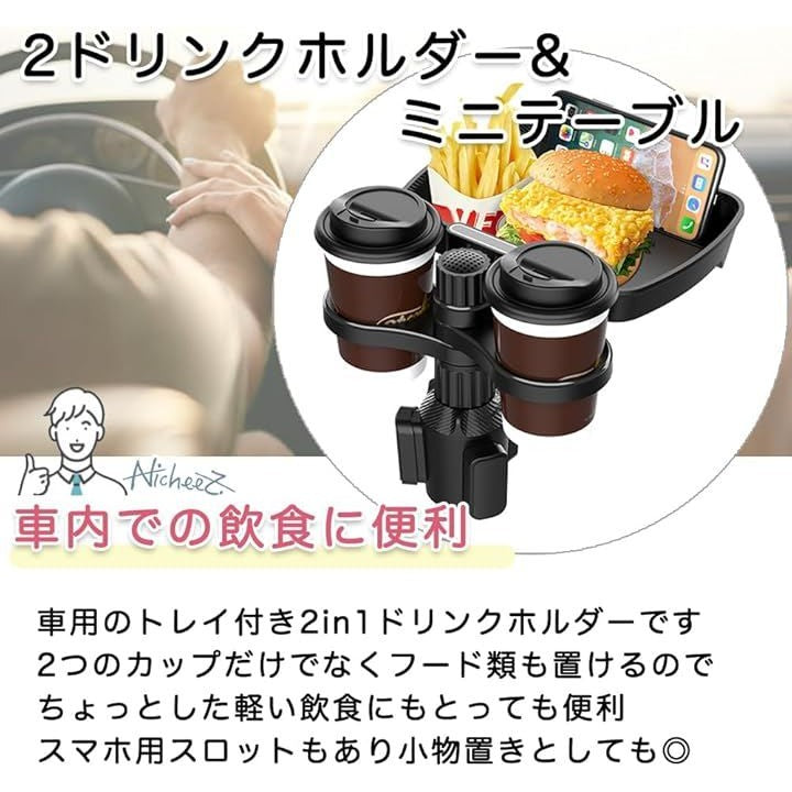 ドリンクホルダー トレイ付き 2in1 360度回転式 スマホスロット