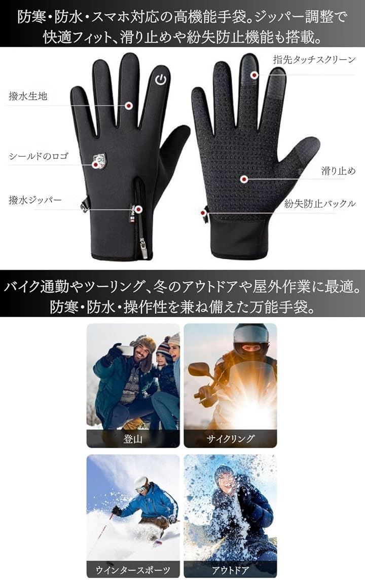 寒冷地でのバイクライディングや通勤、自転車、アウトドア活動まで、さまざまなシーンで使える手袋です。