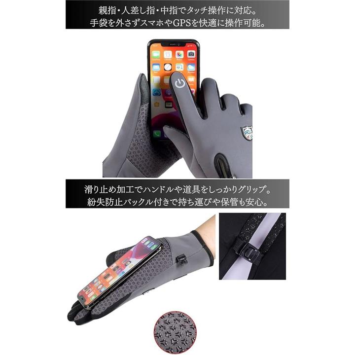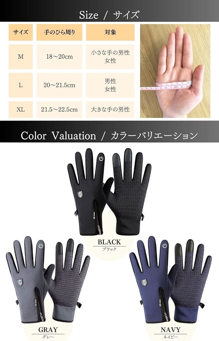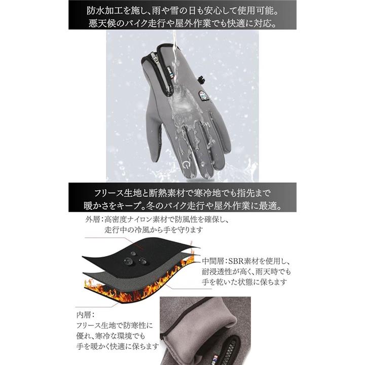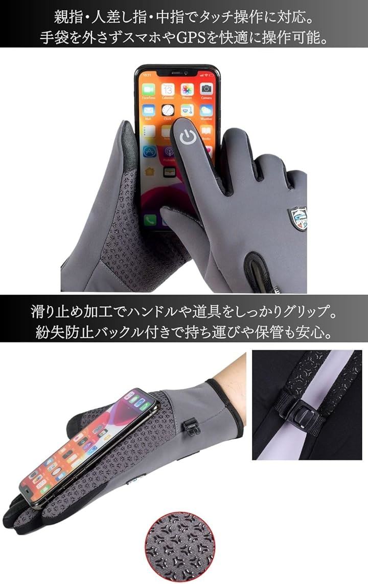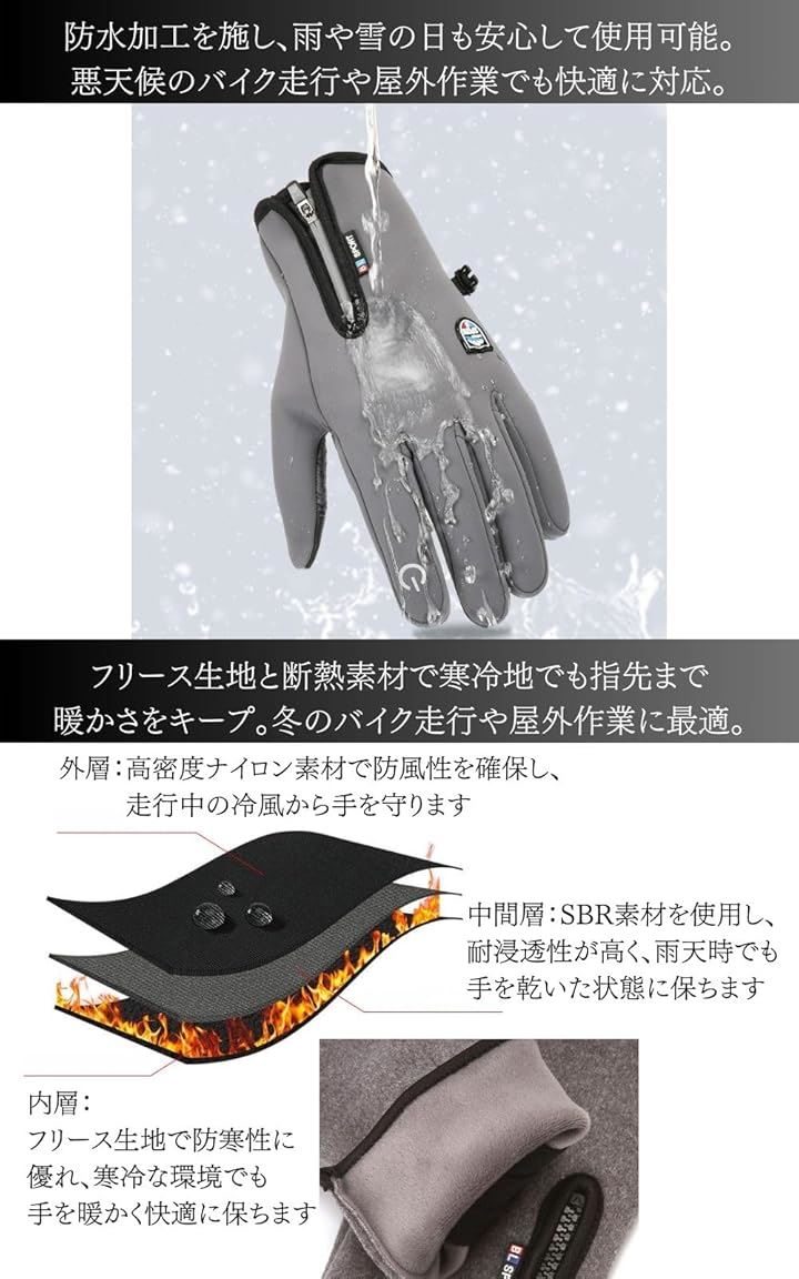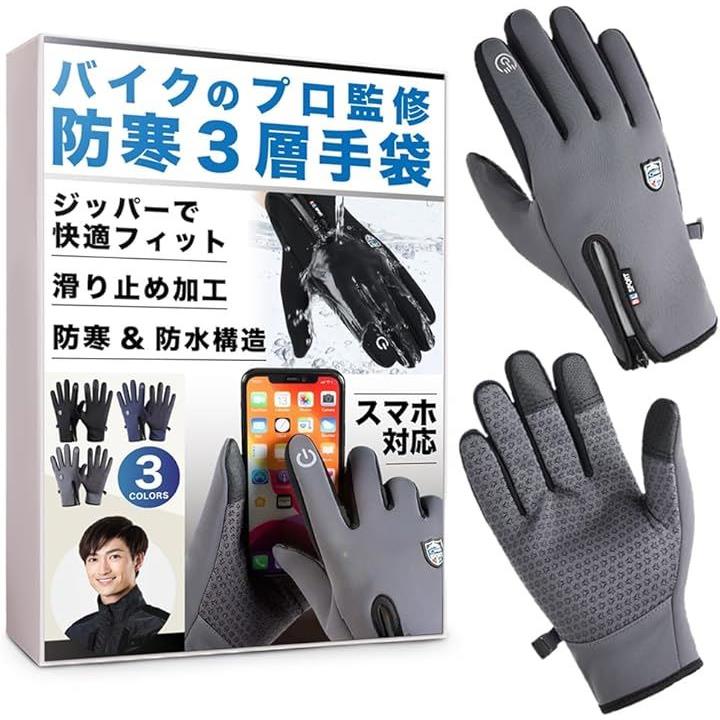 手袋 グローブ バイクグローブ 「プロ監修の冬用3層構造」 防寒 冬 冬用 防寒グローブ 冬用手袋 保温 厚手 防水 撥水 防風 「スマホ対応&滑り止め付き」 スマホ対応 タッチパネル対応 滑り止め 自転車 バイク サイクリング 男女兼用 (グレー, L) |