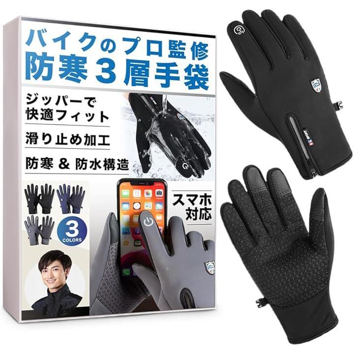 手袋 グローブ バイクグローブ 「プロ監修の冬用3層構造」 防寒 冬 冬用 防寒グローブ 冬用手袋 保温 厚手 防水 撥水 防風 「スマホ対応&滑り止め付き」 スマホ対応 タッチパネル対応 滑り止め 自転車 バイク サイクリング 男女兼用 (ブラック, L) |