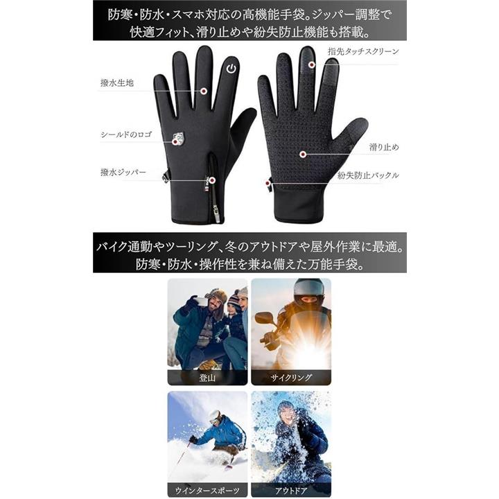 手袋 グローブ バイクグローブ 「プロ監修の冬用3層構造」 防寒 冬 冬用 防寒グローブ 冬用手袋 保温 厚手 防水 撥水 防風 「スマホ対応&滑り止め付き」 スマホ対応 タッチパネル対応 滑り止め 自転車 バイク サイクリング 男女兼用 (ブラック, XL) |