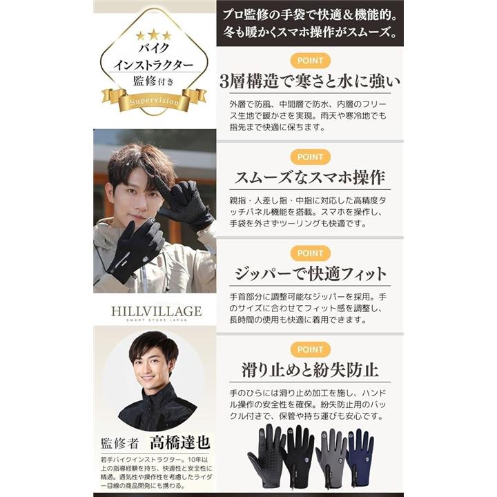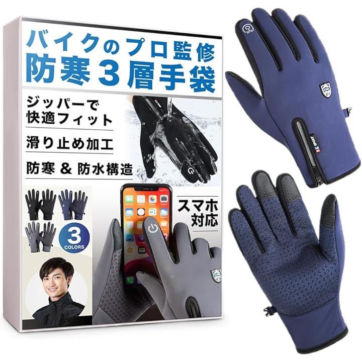 手袋 グローブ バイクグローブ 「プロ監修の冬用3層構造」 防寒 冬 冬用 防寒グローブ 冬用手袋 保温 厚手 防水 撥水 防風 「スマホ対応&滑り止め付き」 スマホ対応 タッチパネル対応 滑り止め 自転車 バイク サイクリング 男女兼用 (ネイビー, L) |