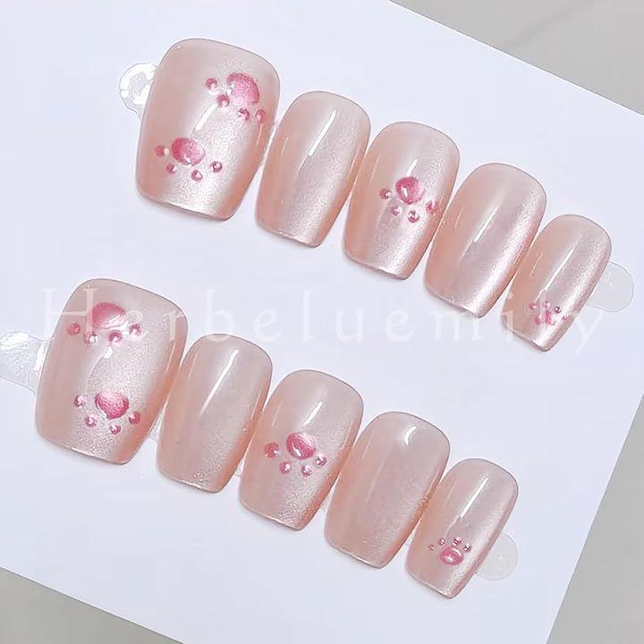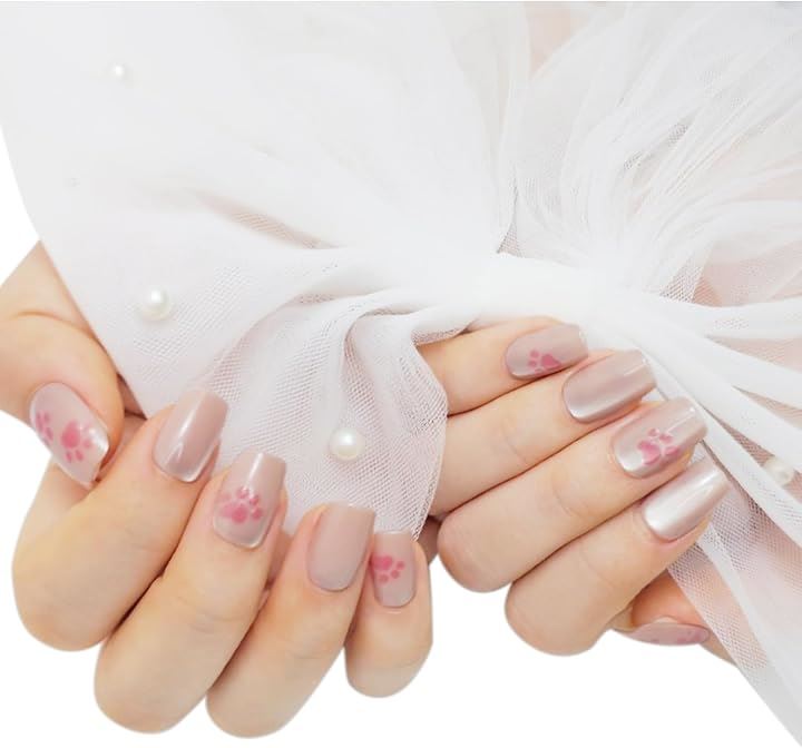 手作り風のネイルチップはつけ外しが簡単、付属の両面シールを貼り付けるだけ。