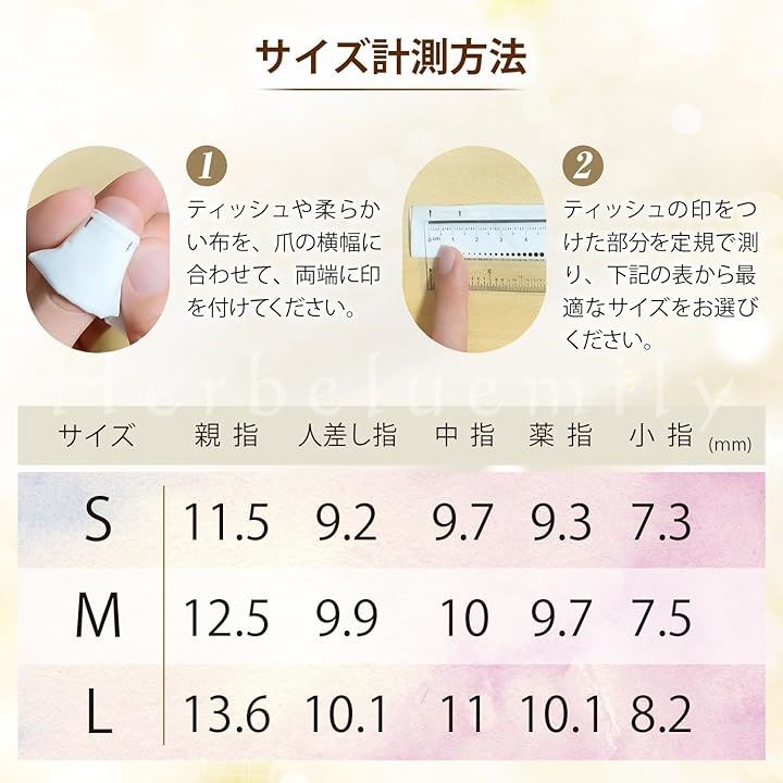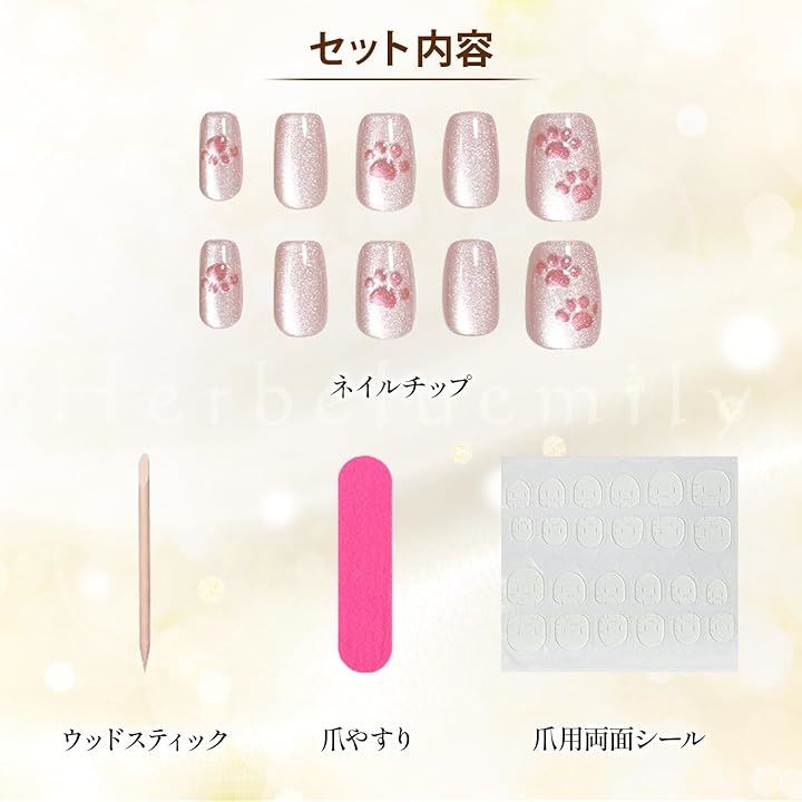 「商品仕様」専用クリアケース:7.5x7.5x1.6cm ネイルチップ10枚 付属品:両面シール、ウッドスティック、爪やすり *ネイルチップサイズの詳細は商品画像をご確認ください。