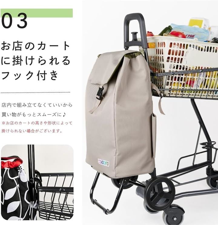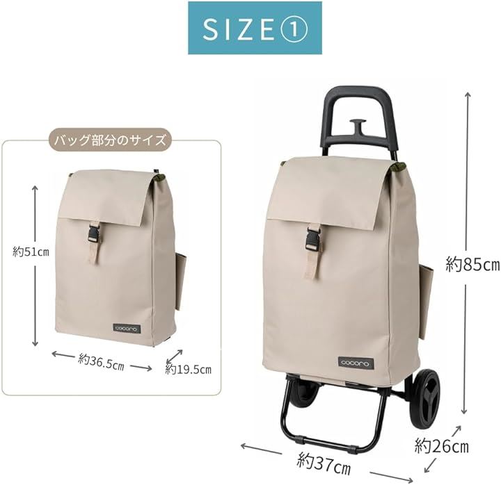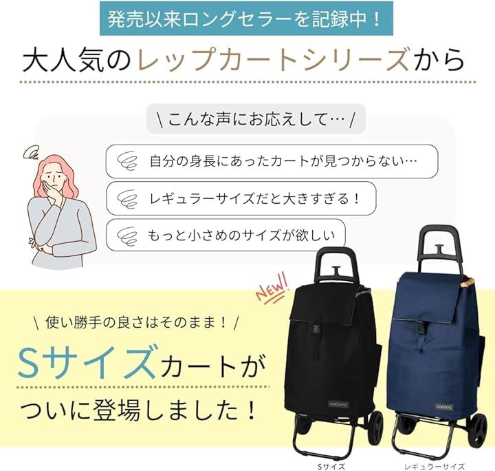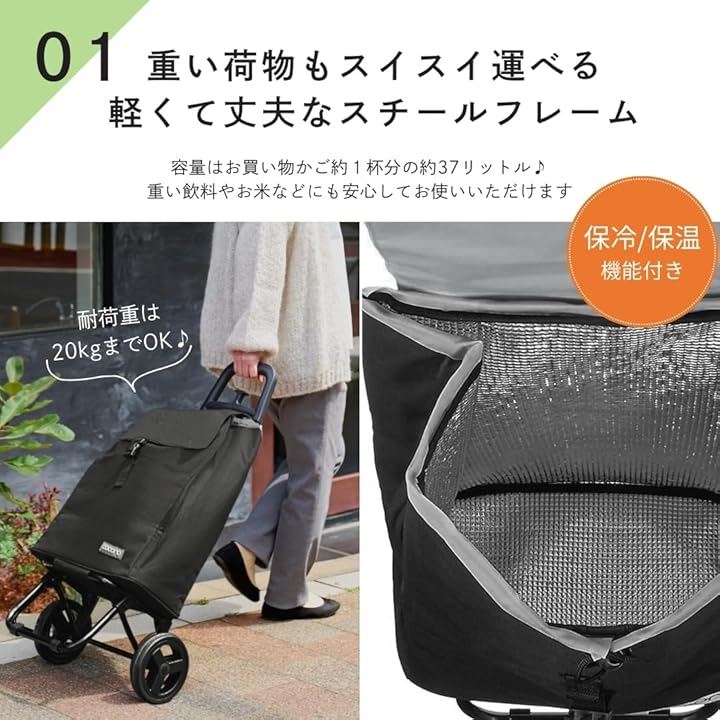 ショッピングカート 買い物カート 保冷 保温 Sサイズ 軽量2kg 大容量37L 小柄な方にも使いやすい 大きなタイヤでラクラク 折り畳み式 収納 荷物フック Cocoro(コ・コロ) |