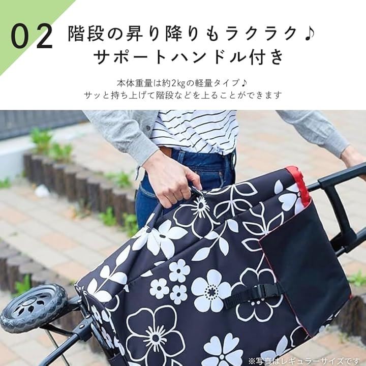 軽くて丈夫. スチールフレームを採用しているのでとっても軽く丈夫です.重い飲料やお米などの買い物にも安心です。