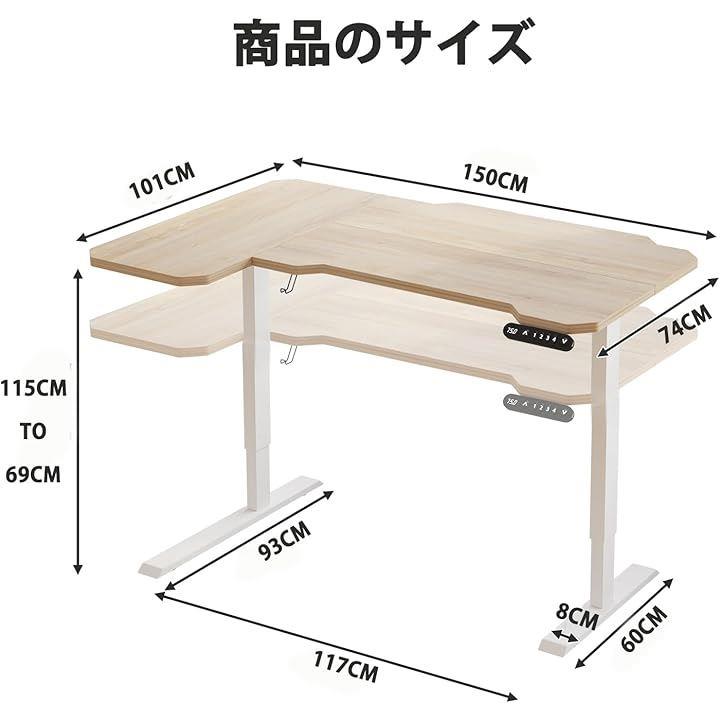 電動昇降デスク 机 電動式 パソコンデスク 電動昇降式スタンディングデスクつくえ 高さ調節メモリー機能付き 高さ69~115CM 高さ調節可能