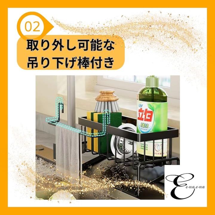 スポンジラック シンク 置き キッチン ホルダー 軽量 ステンレス 可動式仕切り板付き 洗面所 キッチン収納 取り外せる布巾掛け付き スポンジホルダー 防錆
