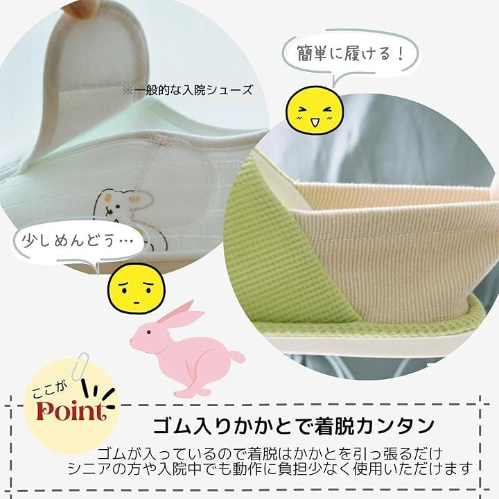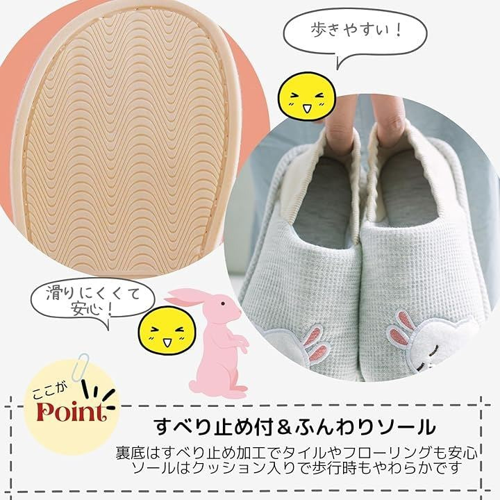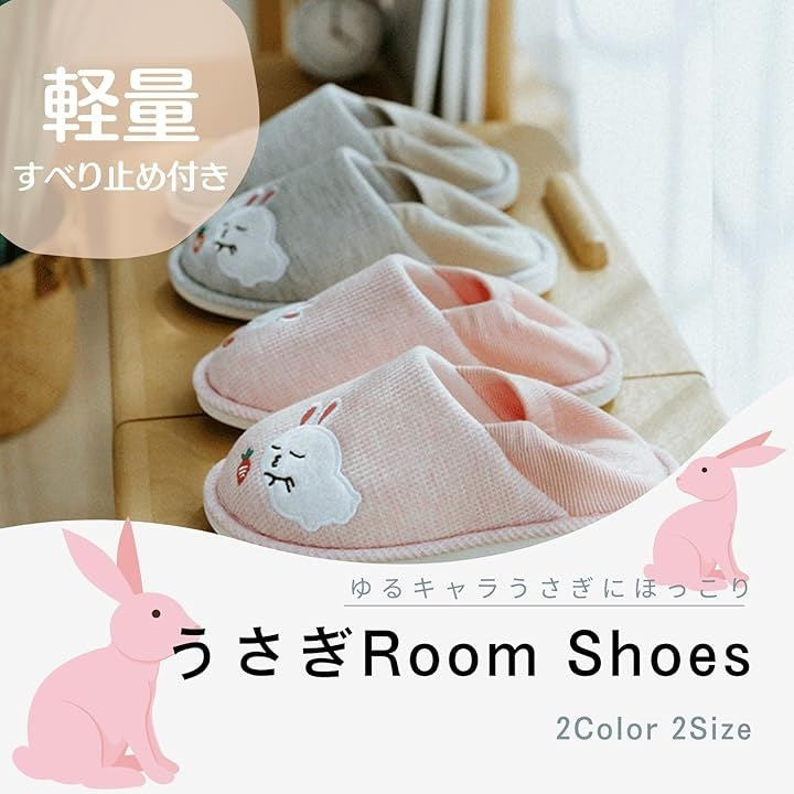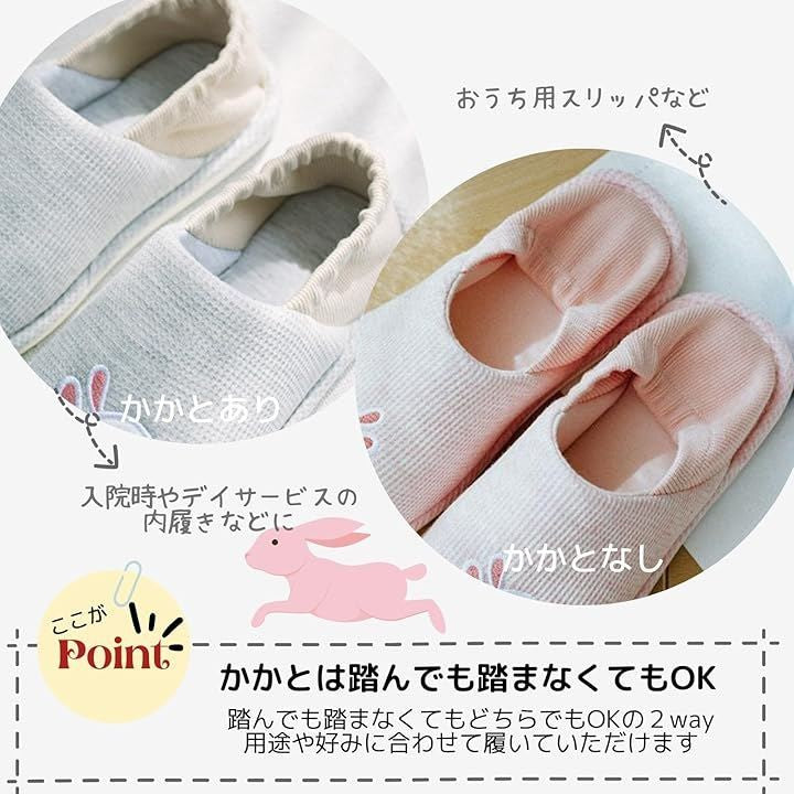 うさぎ ルーム シューズ 室内履き スリッパ かかと あり なし 2way すべり止め 付 介護 入院 リビング キッチン トイレ シンプル レディース