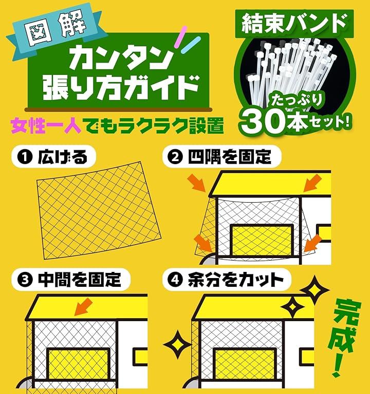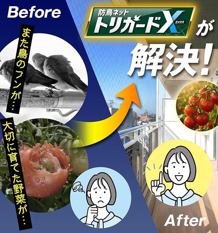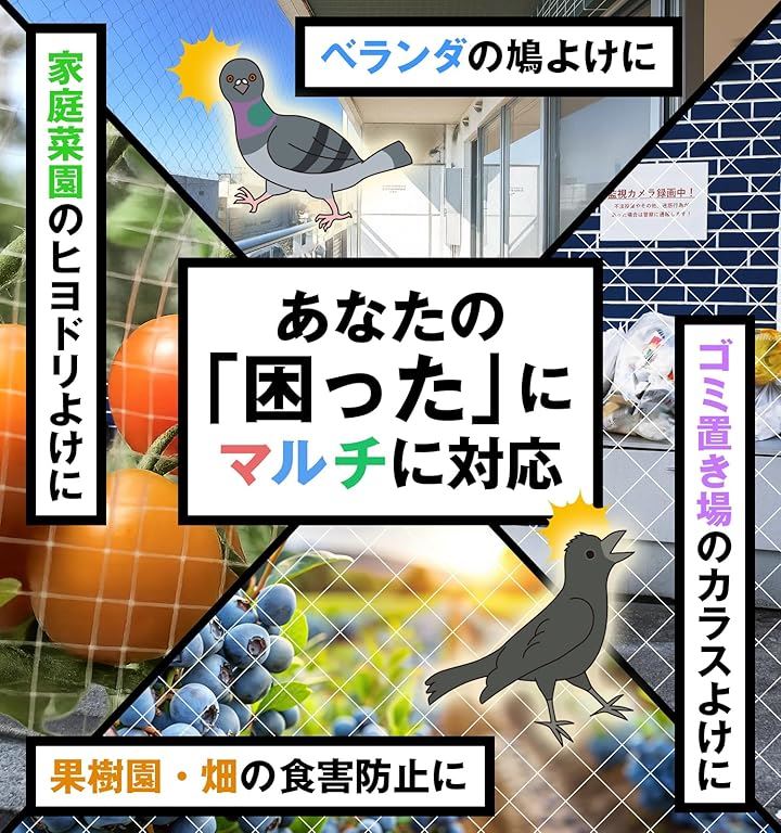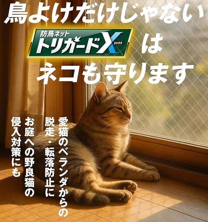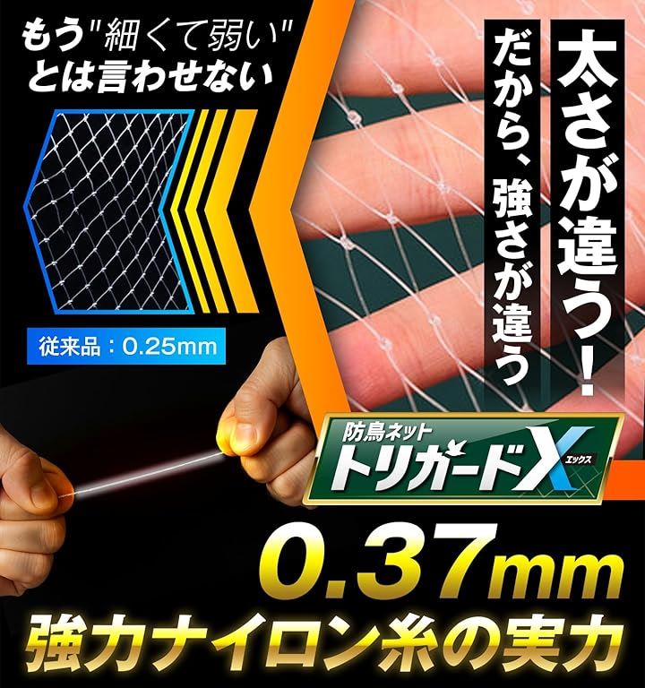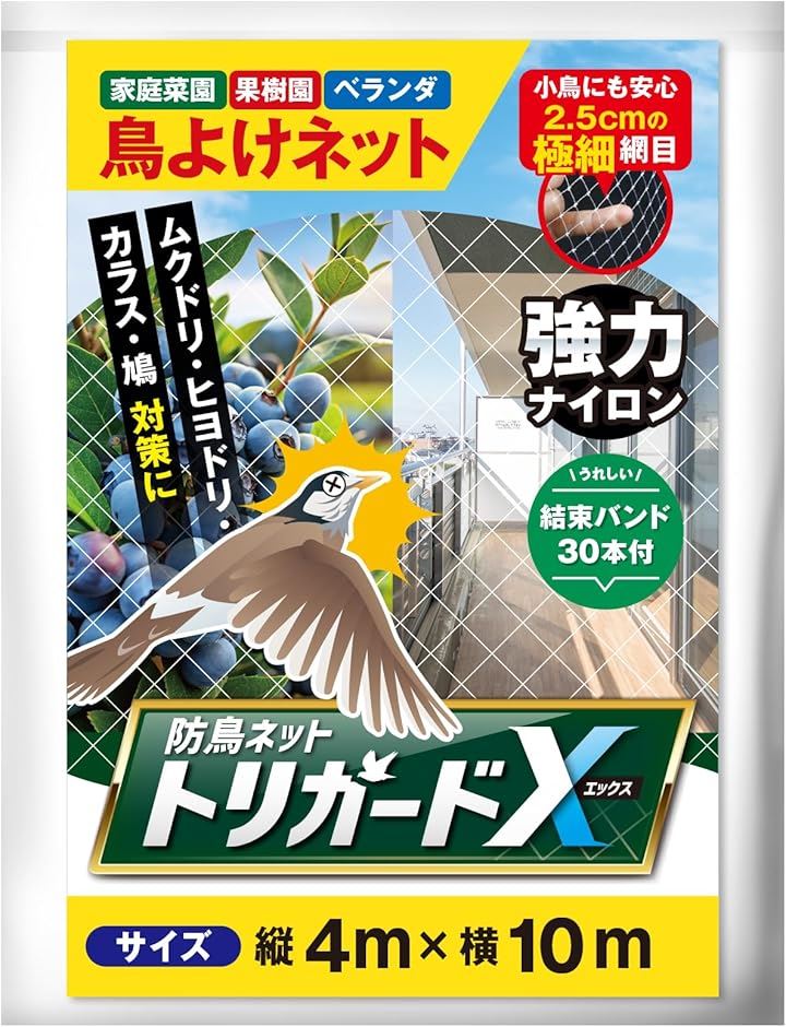 防鳥ネット トリガードX 鳥よけネット 鳩よけ 鳥避け 結束バンド30本付き UVカット 強力ナイロン スズメ カラス対策 ベランダ用 家庭菜園 果樹園