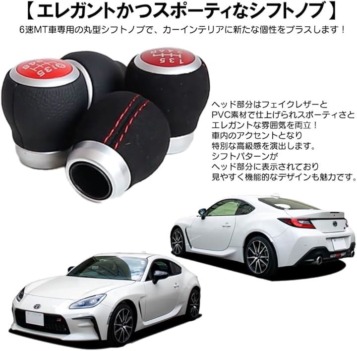 互換品 シフトノブ スバル 6速MT レッド マニュアル ギアシフトノブ