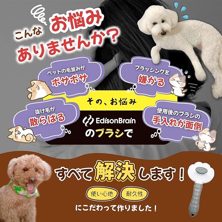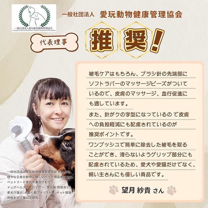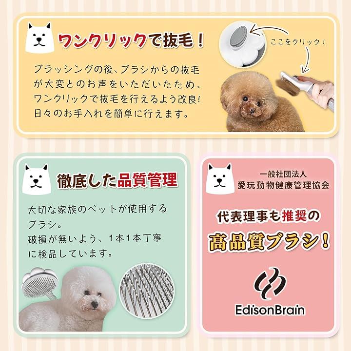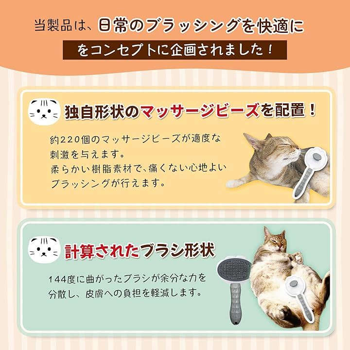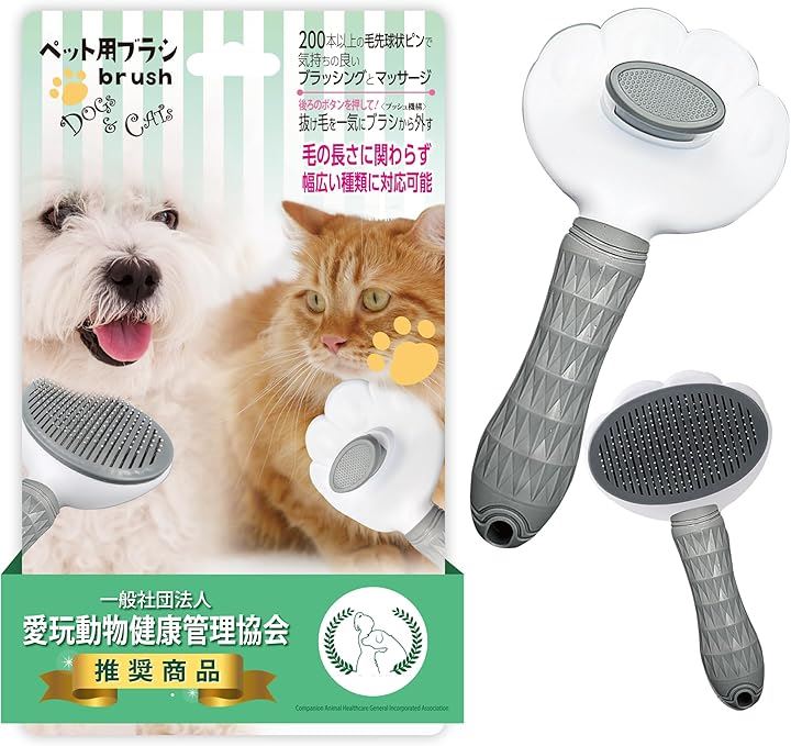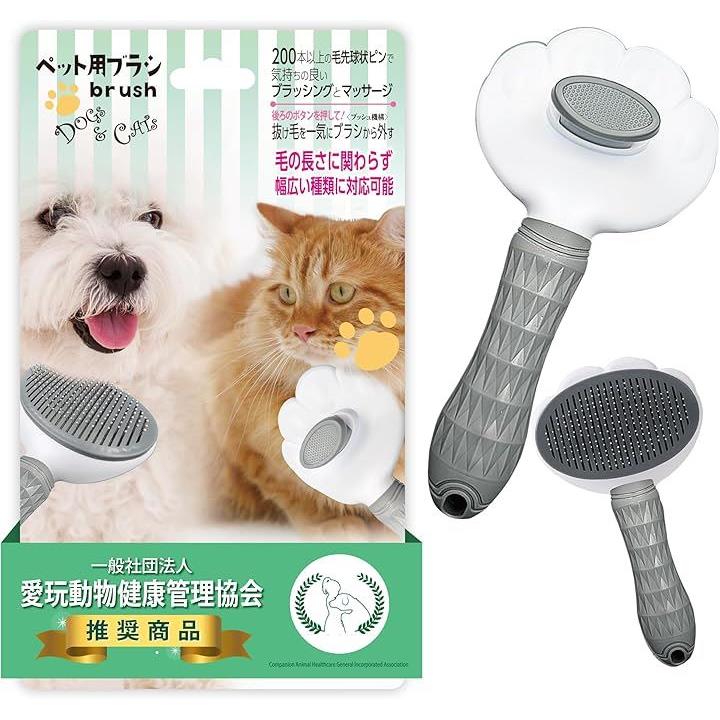 愛玩動物健康管理協会監修ペット用 マッサージブラシ マッサージビーズで気持ちよく抜け毛除去ワンプッシュ式 犬・猫兼用 グルーミングブラシ 長毛種 中毛種 短毛種