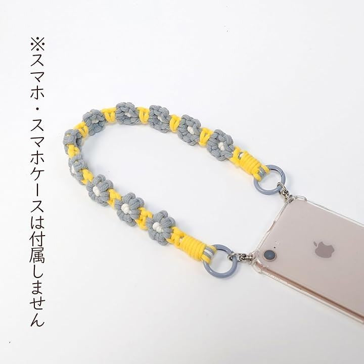 コットンコード フラワー ストラップ ショルダーストラップ 編み込み スマホ サコッシュ バッグ ショルダーベルト