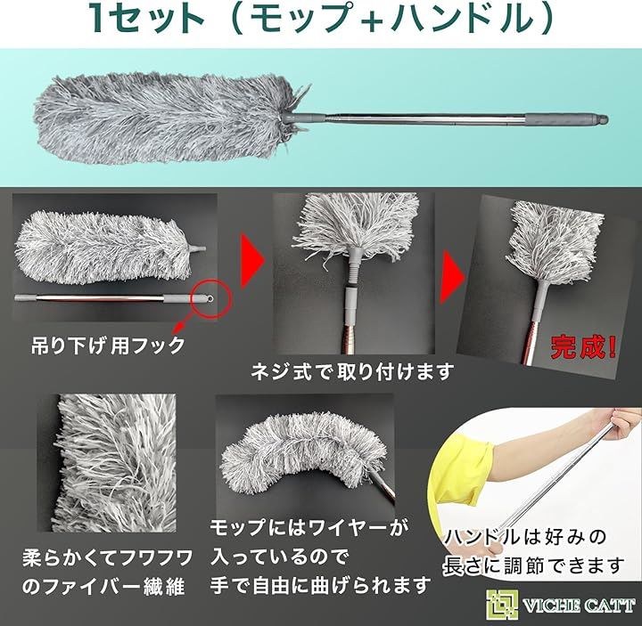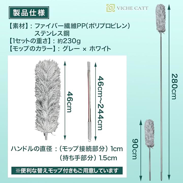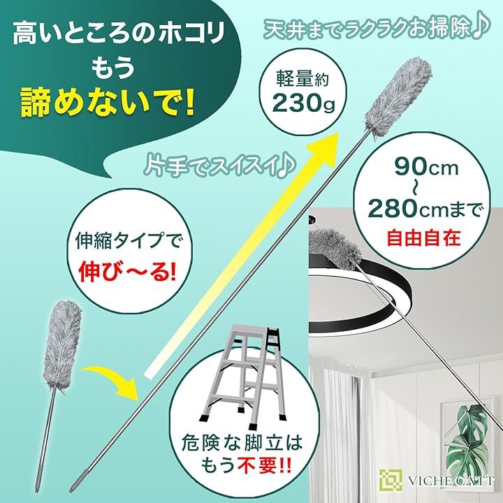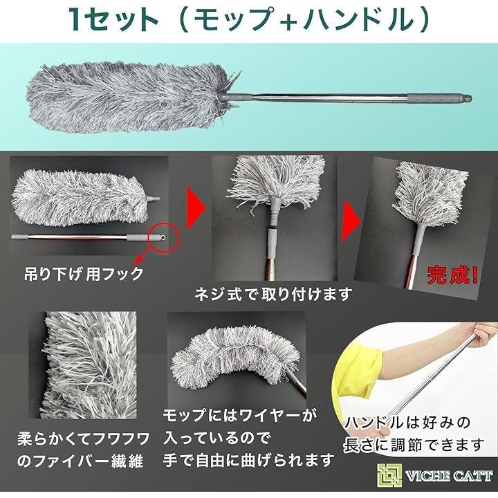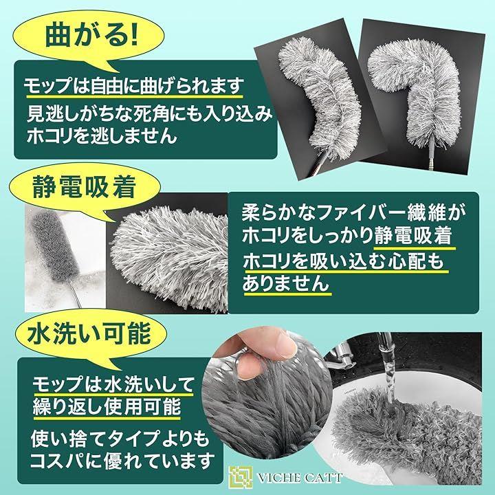 ホコリ取り ハンディモップ 伸縮 可能 洗える 高所清掃 最長 2.8M