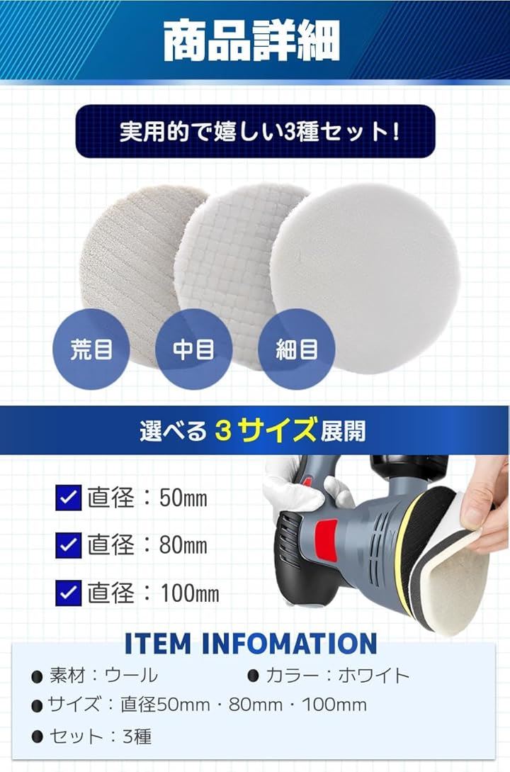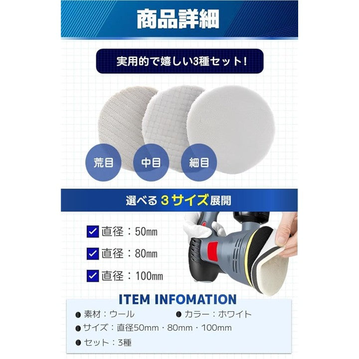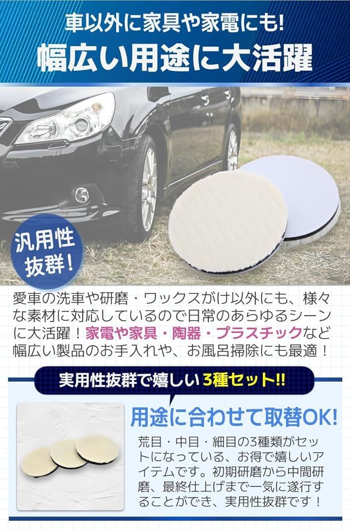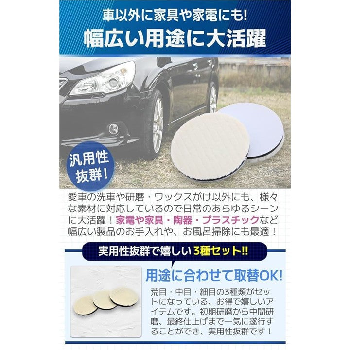 互換品 ポリッシャー ポリッシュバー 車磨き 洗車 ワックス 荒目 中目 細目 3種セット