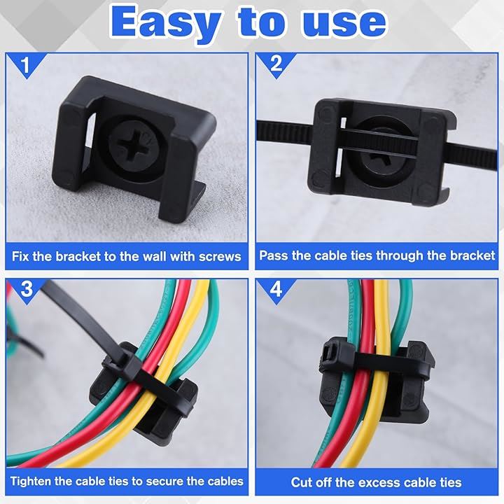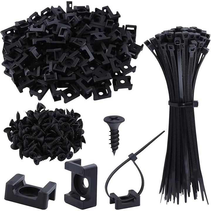 100個ケーブルジップタイマウントキット サドルタイプ 100個ナイロン製結束バンド 150mmx4mm 100個タッピングねじ ケーブルタイベース ケーブルタイマウント クランプ 家庭用