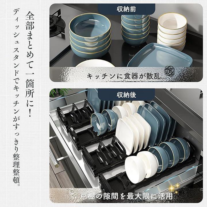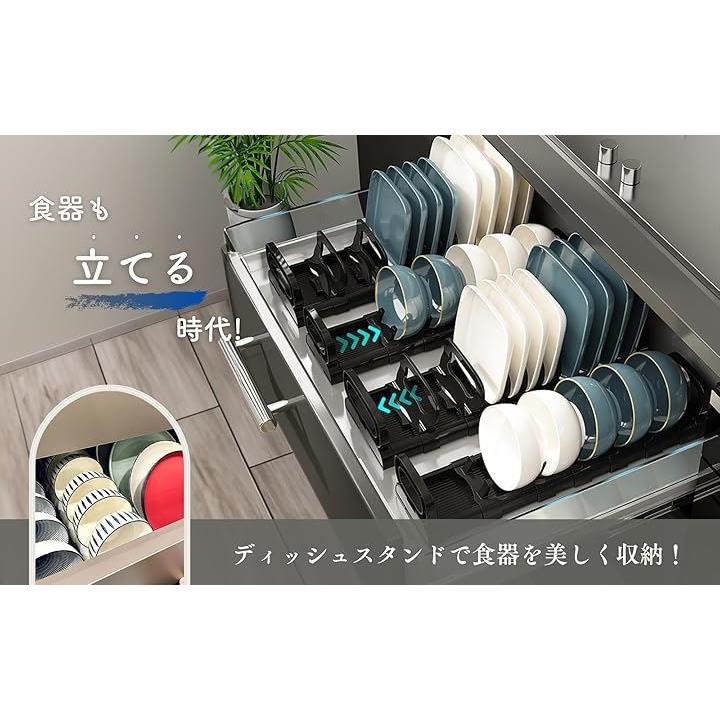 ディッシュスタンド 縦置き 省スペース おしゃれ キッチン収納 引き出し対応 アルミ製 錆びにくい 間隔調整可能 食器棚整理 軽量デザイン