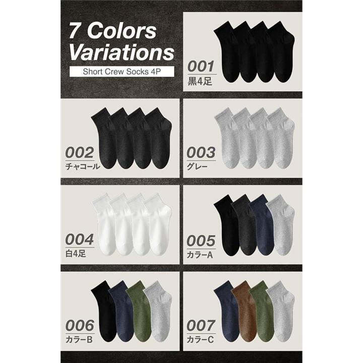 靴下 メンズ ハーフ丈 ミドル丈 ビジネス ハーフソックス ショート 足首 4足セット