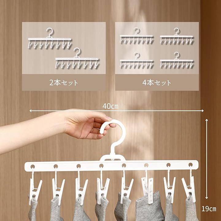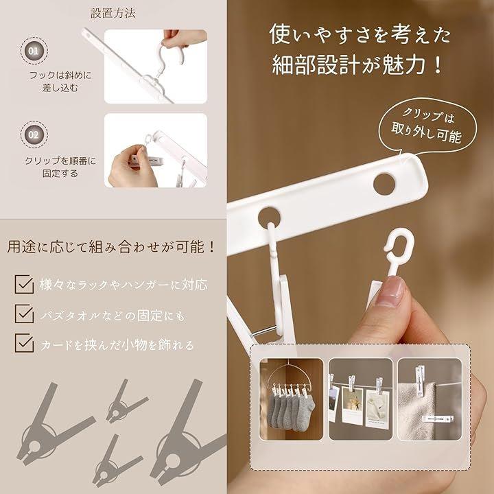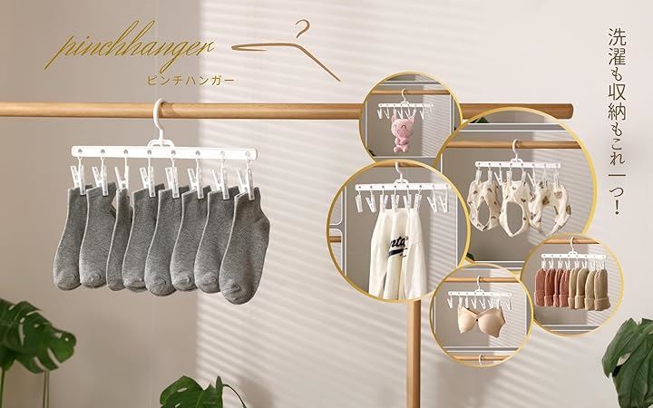 洗濯物干し ピンチハンガー 引っ張るだけ 8連 下着 靴下 360度回転
