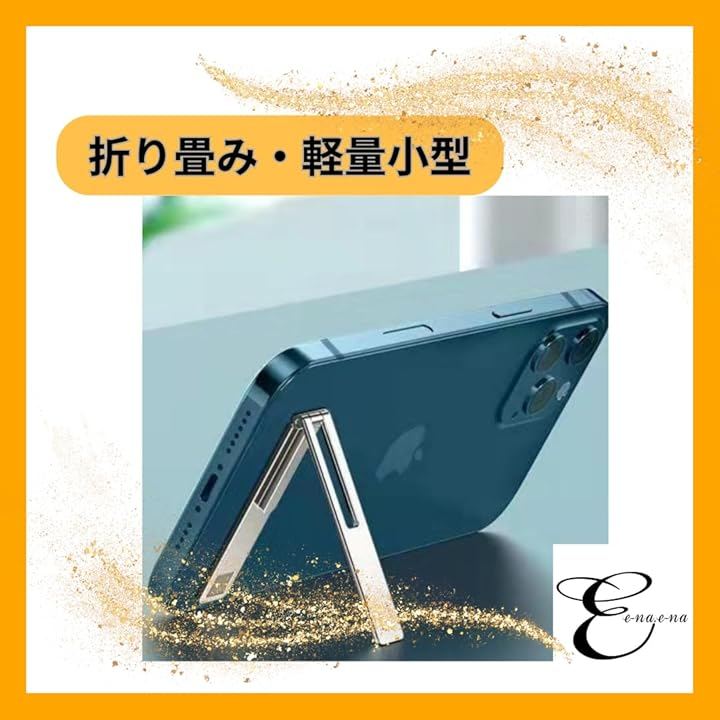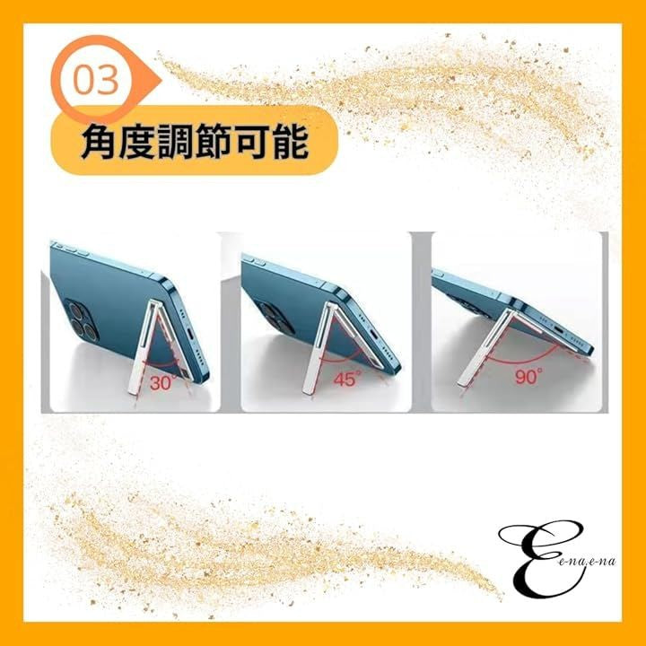 スマホスタンド iphone 携帯 縦置き 横置き携帯 対応 0-90°角度調節可能 シンプル スリム 小型 軽量 スマートフォン キックスタンド メタル 驚きの薄さ 0.7mm 超薄型 金属 製 ステルス 貼り付け