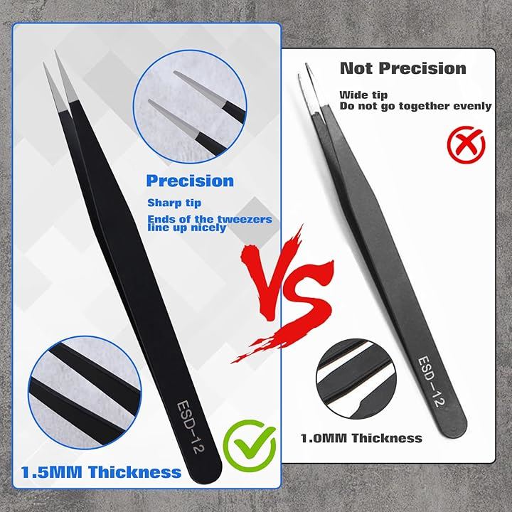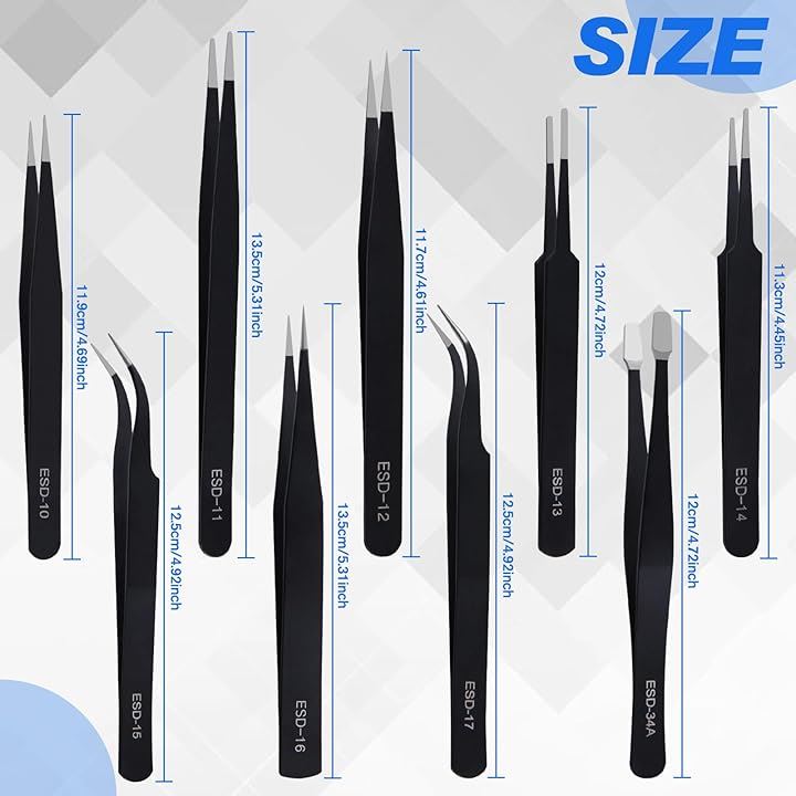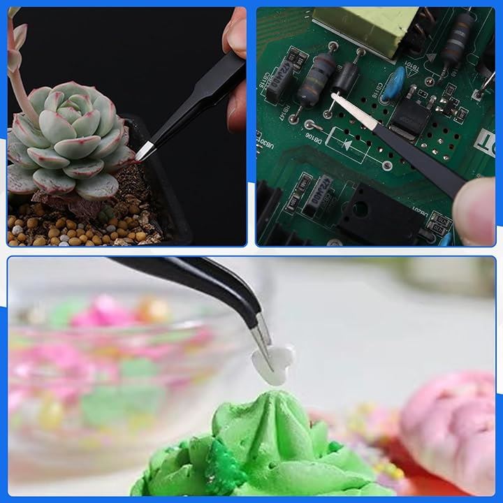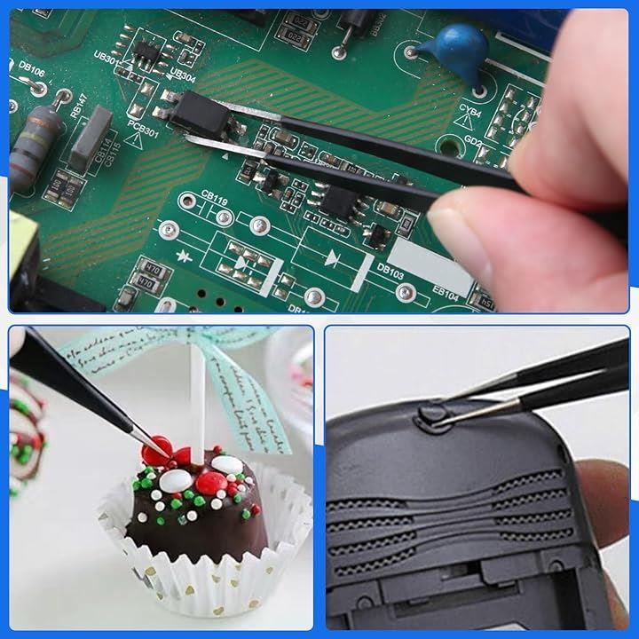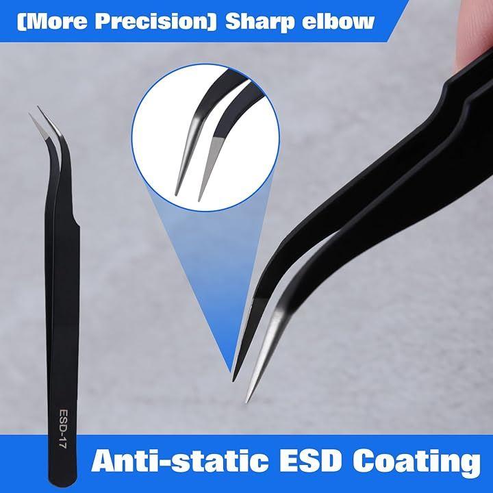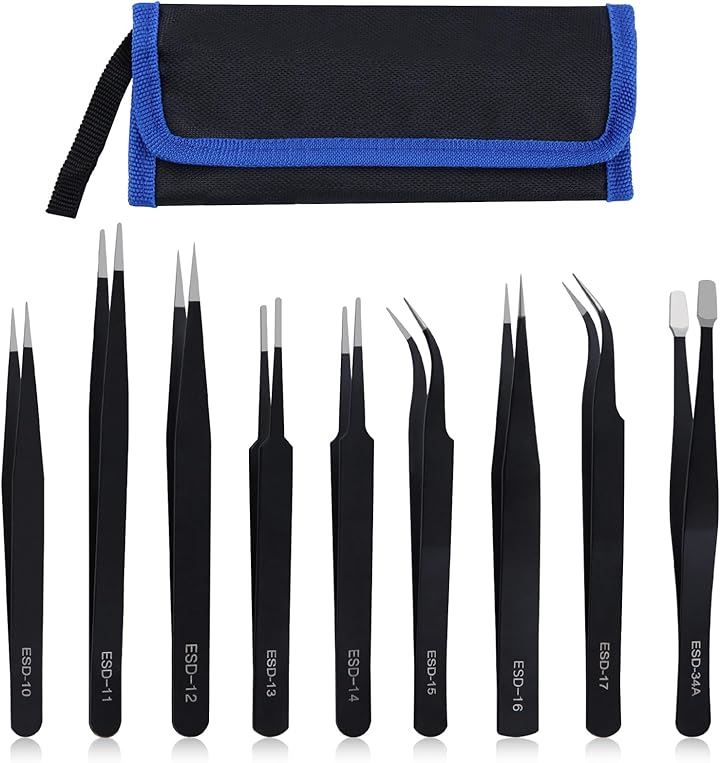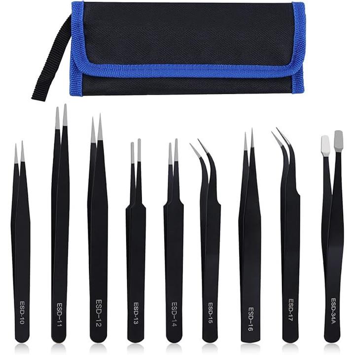 9本セット 精密ピンセット プレミアムピンセットキット プレミアムクラフトピンセットキット ESD 防磁 静電防止 ステンレス製 ツイーザー エクステ 電解 防錆 黒色皮膜精密機器 電子工作 模型製作エクステツイーザー