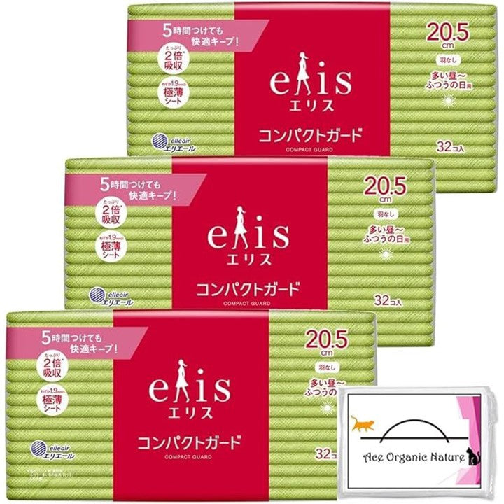 まとめ買い コンパクトガード 多い昼~ふつうの日用 205 羽なし 20.5cm 32枚x3個セット 合計96個 特製ティッシュ付