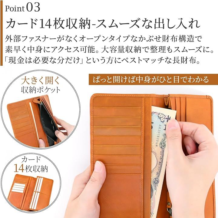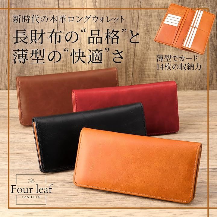 薄型 カード14枚収納 財布 メンズ 長財布 薄い 革財布 本革 ウォレット カードがたくさん入る 男性 レザー 牛革