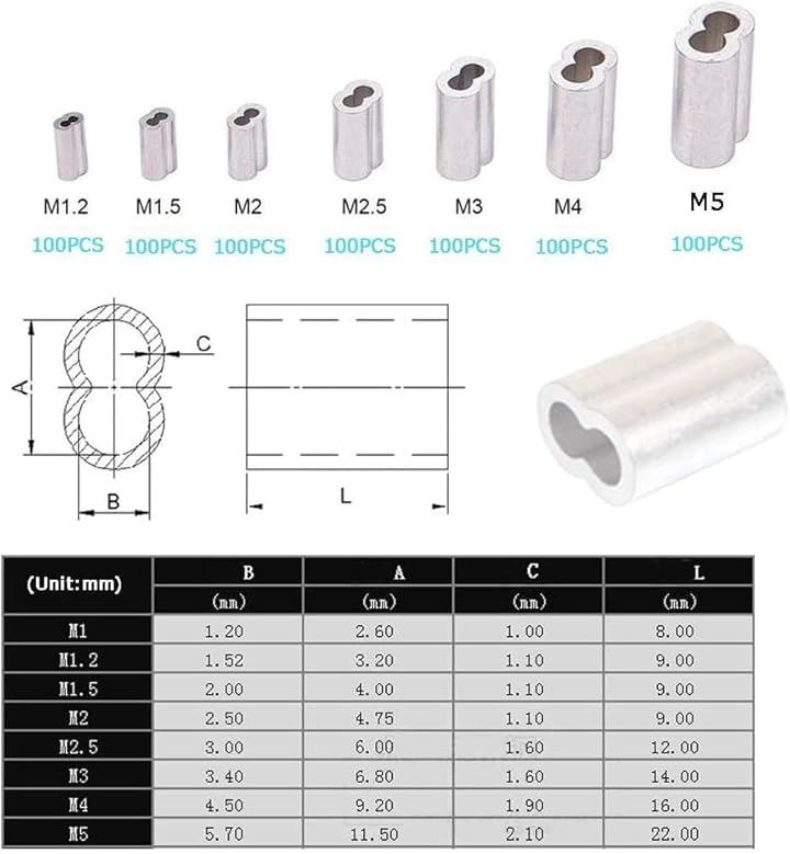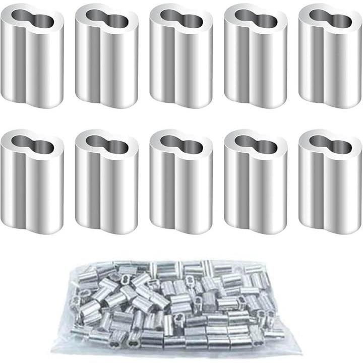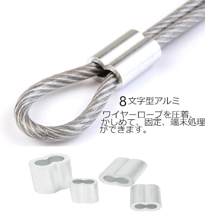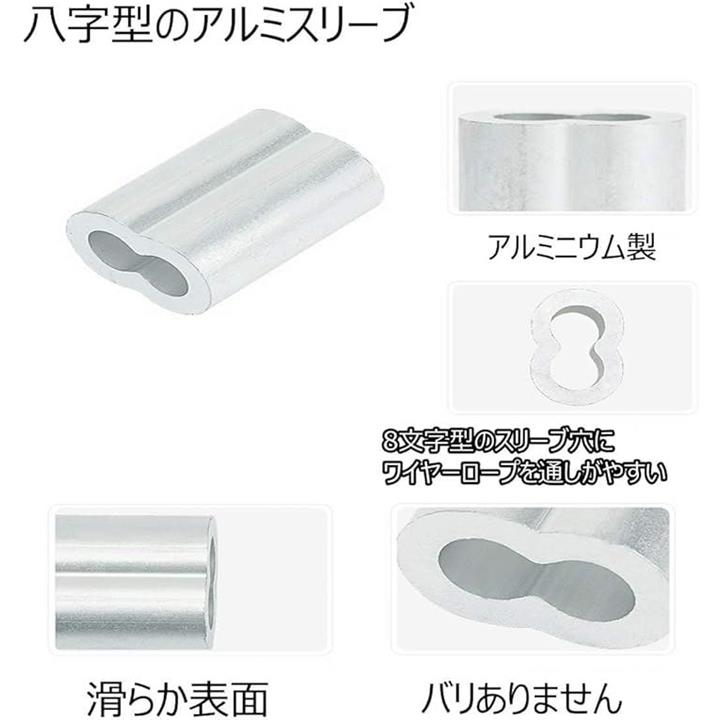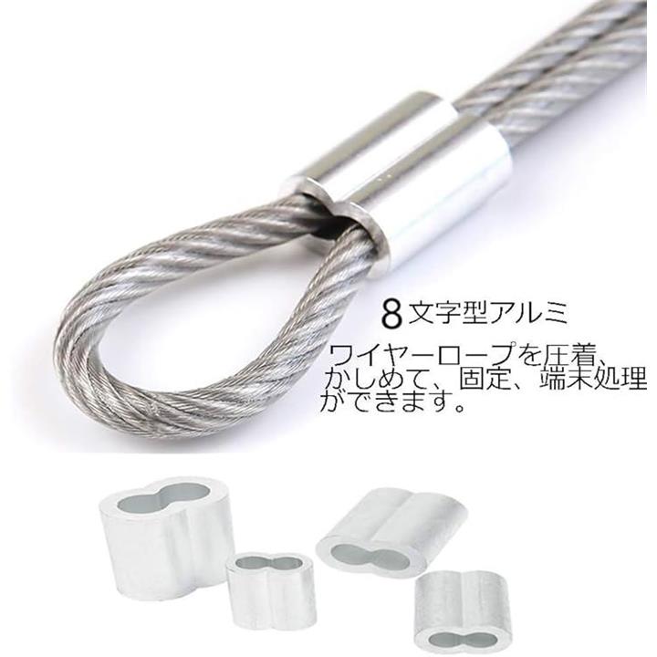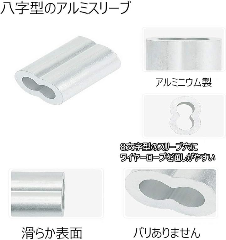 ワイヤーロープスリーブ かしめ 金具 アルミスリーブ 5mm 八字型 アルミクランプ管 アルミ合金 ワイヤーロープ用 かしめ機固定 100個セット