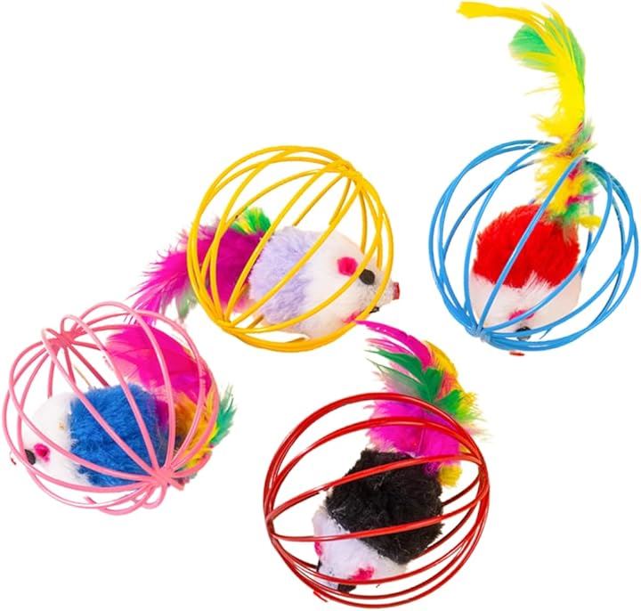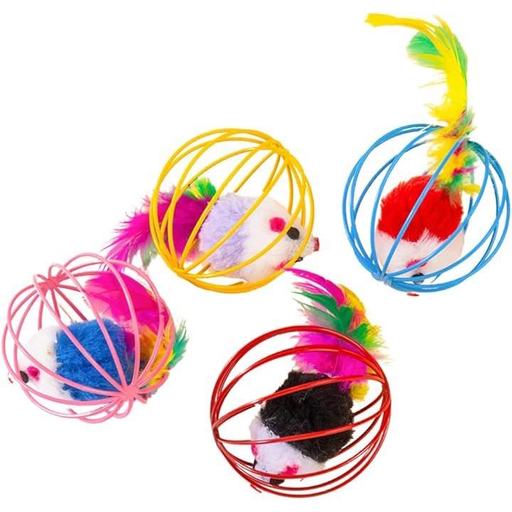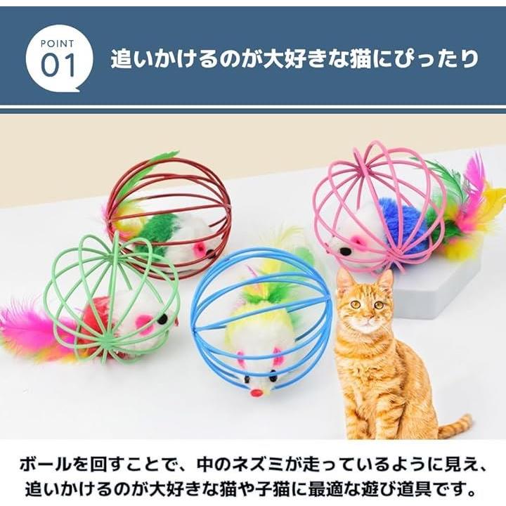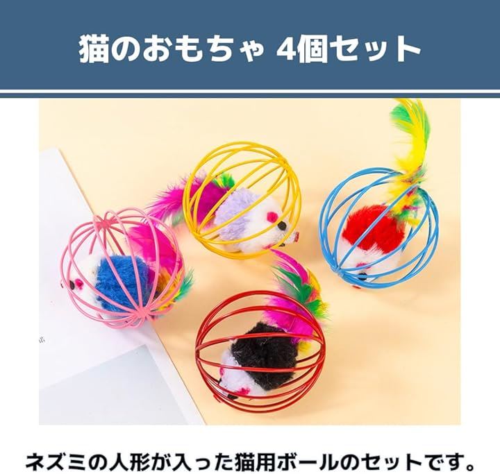猫 おもちゃ ネコ ねずみのしっぽ 羽 お留守番 遊び道具 色ランダム 4個セット