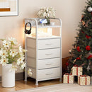 チェスト 棚付き 収納チェスト タンス LEDライト付き キャビネット引き出し 洋服収納 箪笥リビング収納 布製引き出し 寝室収納ケース USBポート 衣類収納 軽量 コンパクト 省スペース 薄型 スリム 木製天板 転倒防止 組み立て簡単 2段階棚