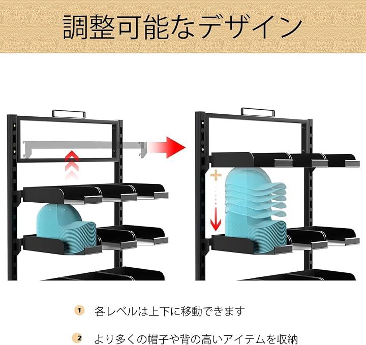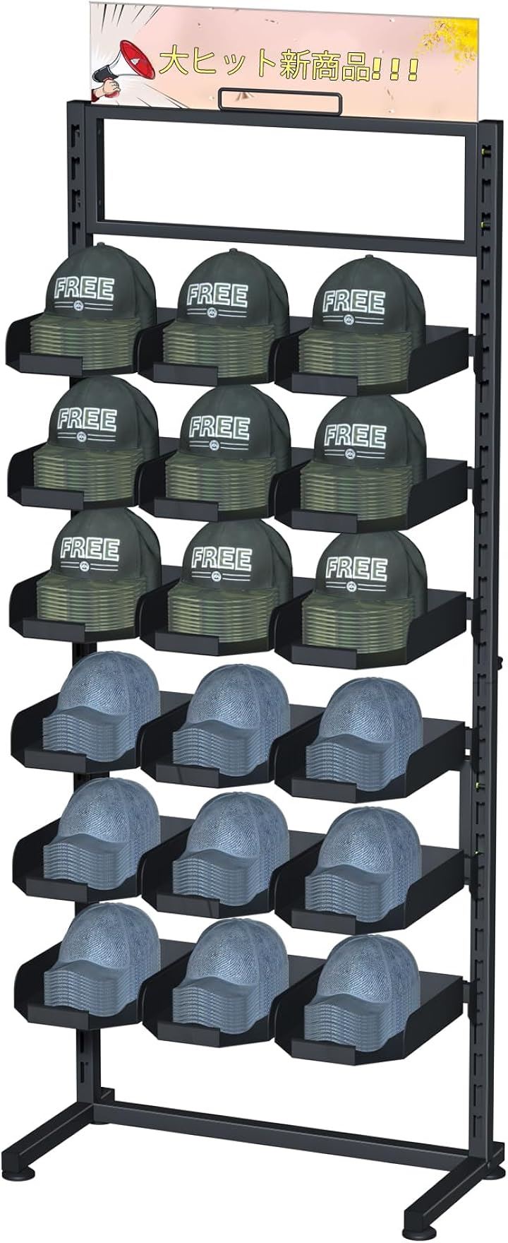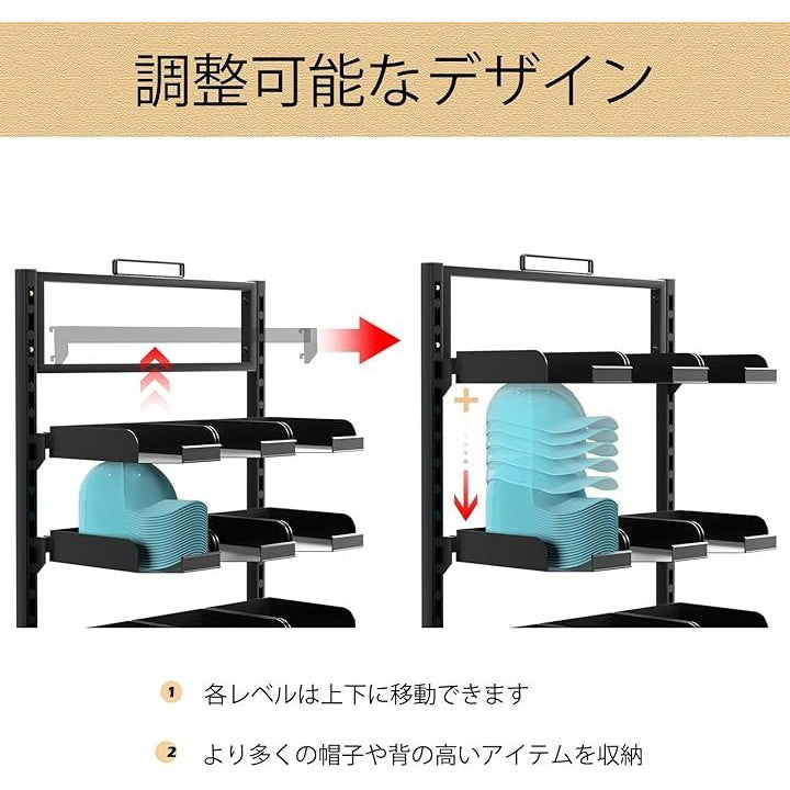 大型帽子ハンガー自立式 6段調節可能ボールキャップ収納オーガナイザー 18プレートトレイ付き 立つ帽子スタンド 商業用家庭用 野球帽展示棚
