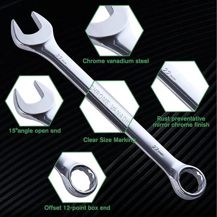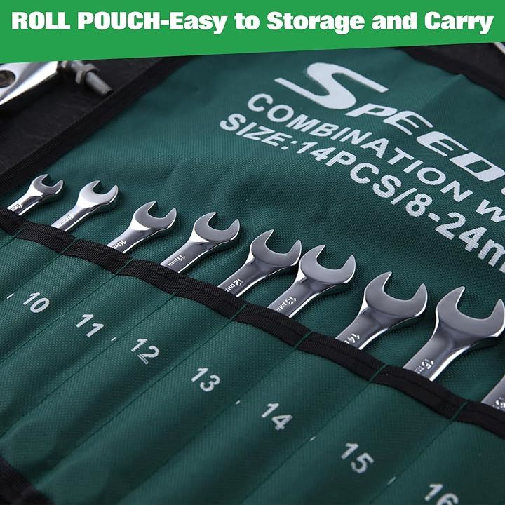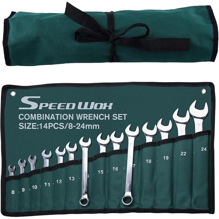 コンビネーションレンチセット コンビネーションスパナ 14本組 バイク 工具セット 車載工具 自動車整備工具 ナット回し バイク整備用工具 自転車レンチ 両用ヘッド 鏡面仕上げ CR-V製 自動車修理 収納袋付き