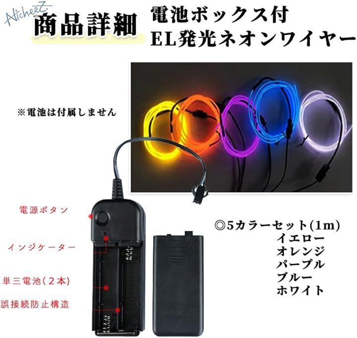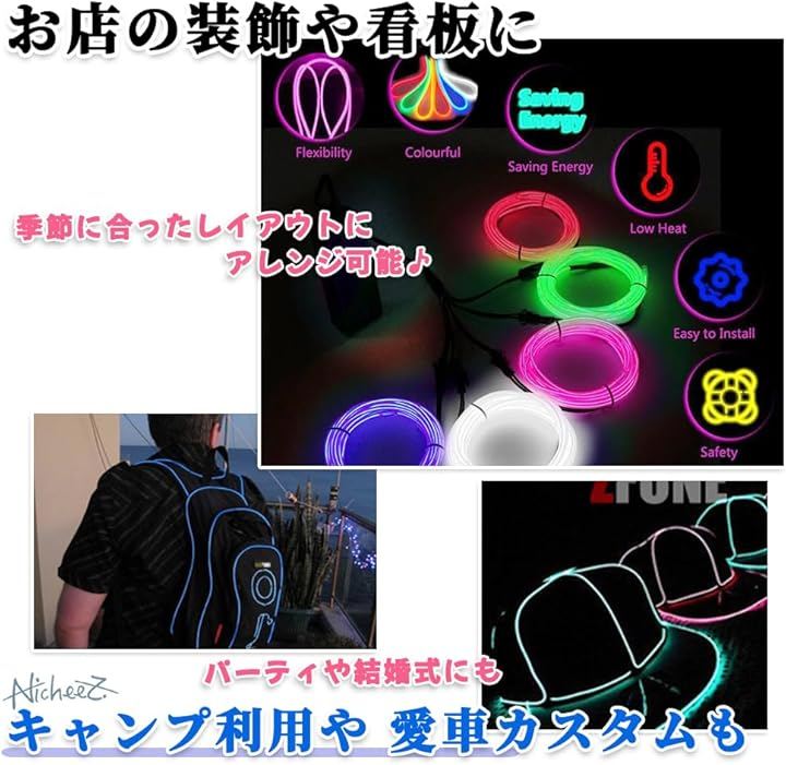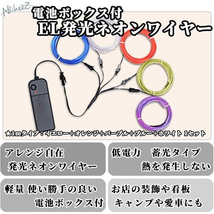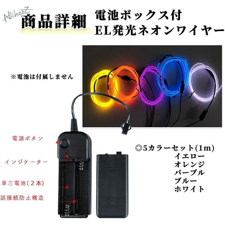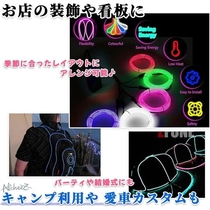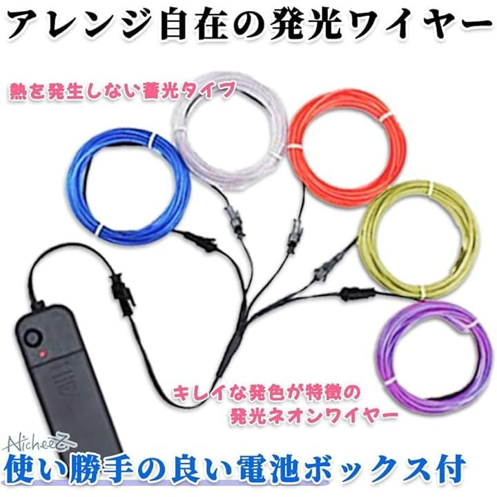ELワイヤー 車 電池ボックス付 発光 ネオン チューブ