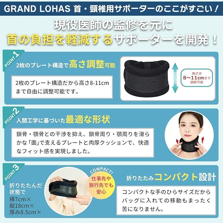 現役医師監修 首サポーター 夏用 超軽量 ネックサポーター コルセット ストレートネック 通気性 高さ調整可能 薄型 男女兼用 洗濯OK ワンサイズ