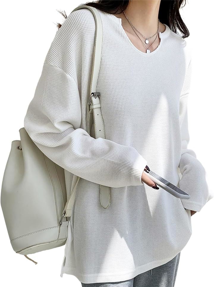 [Dep Club] シンプリストが選ぶ tシャツ レディース 長袖 ゆったり 長袖tシャツ ロンt ワッフルtシャツ 女性 シンプル トップス カジュアル 大きいサイズ 無地 体型カバー |