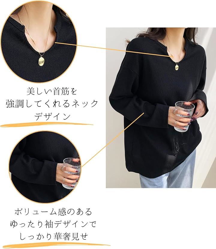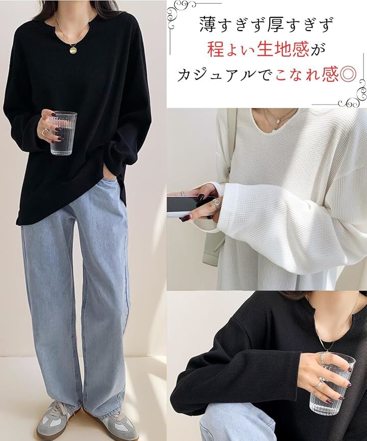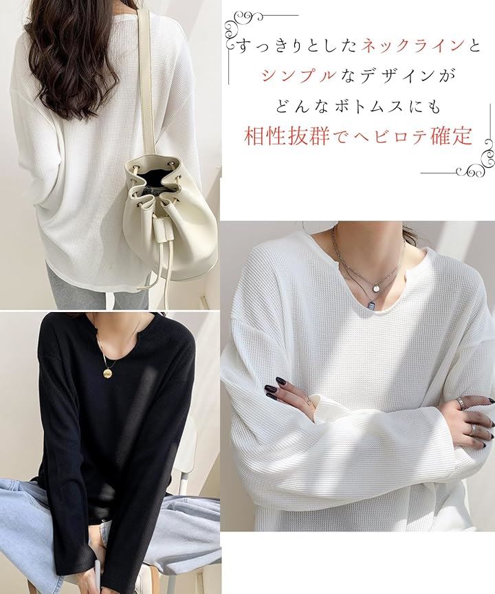 「シンプル&快適。ゆったり着られるワッフルTシャツ」「シンプリストが選ぶ Tシャツ レディース 長袖」は、カジュアルながらも上品なデザインが魅力のアイテム。