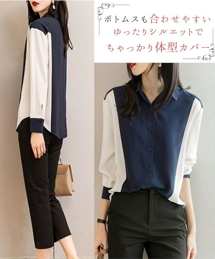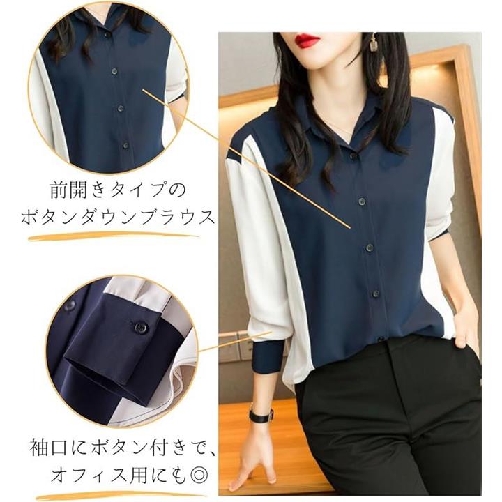 シャツブラウス レディース 長袖 おしゃれ きれいめ トップス オフィスカジュアル エレガント 通勤 襟付き フォーマル 上品 ボタン 大きいサイズ 事務服