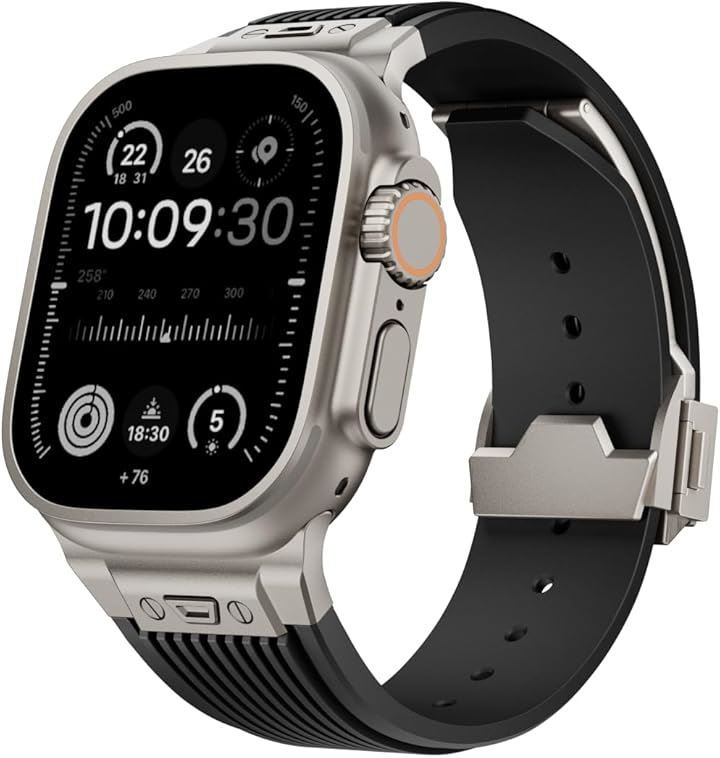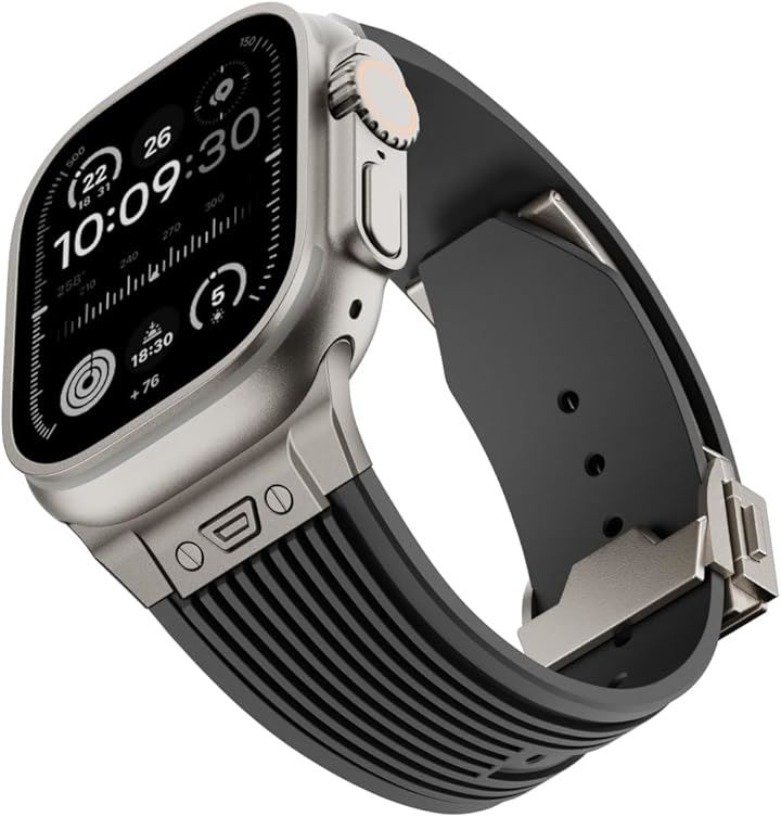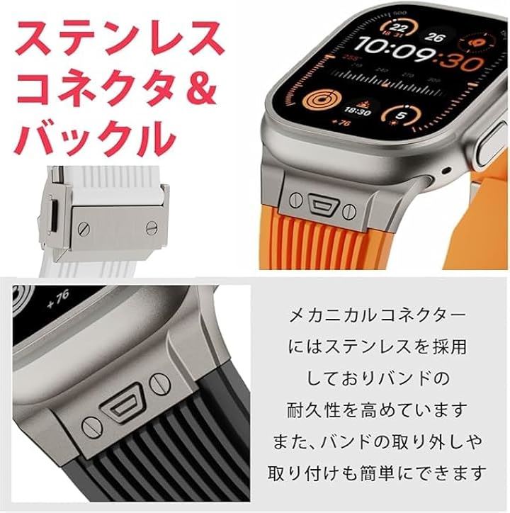 アップルウォッチUltraのチタンケースに調和し、デザイン性も機能性も抜群のバンドです。
