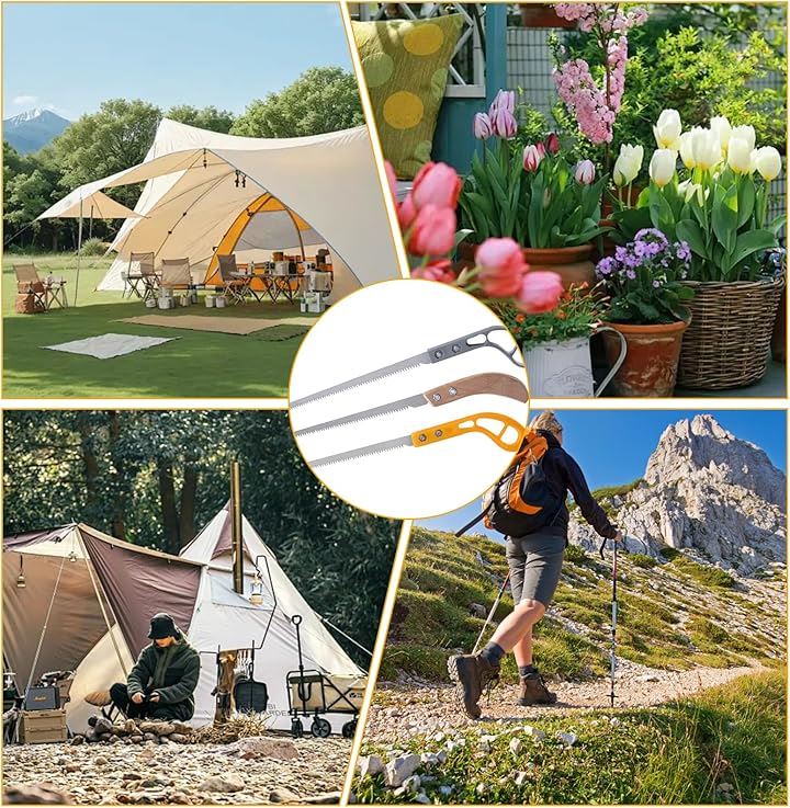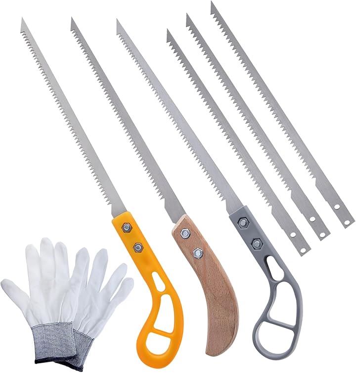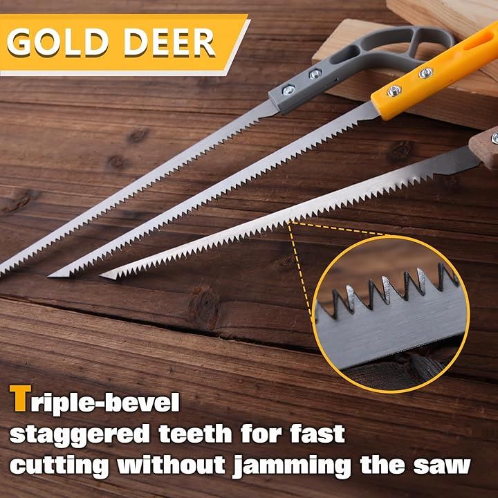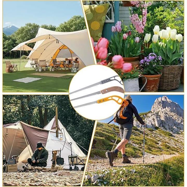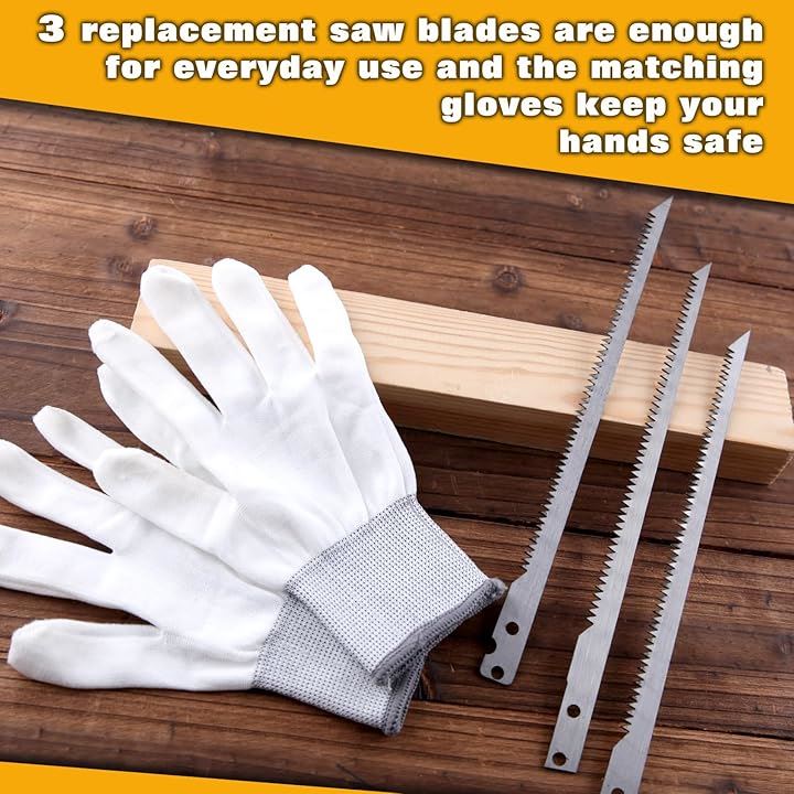 アウトドア用ポータブルハンドソー 14インチ 3枚入り 替え刃3枚と手袋付き 屋外 家庭用 頑丈なブレードハンドソー キャンプやサバイバルに最適な薪割りソー