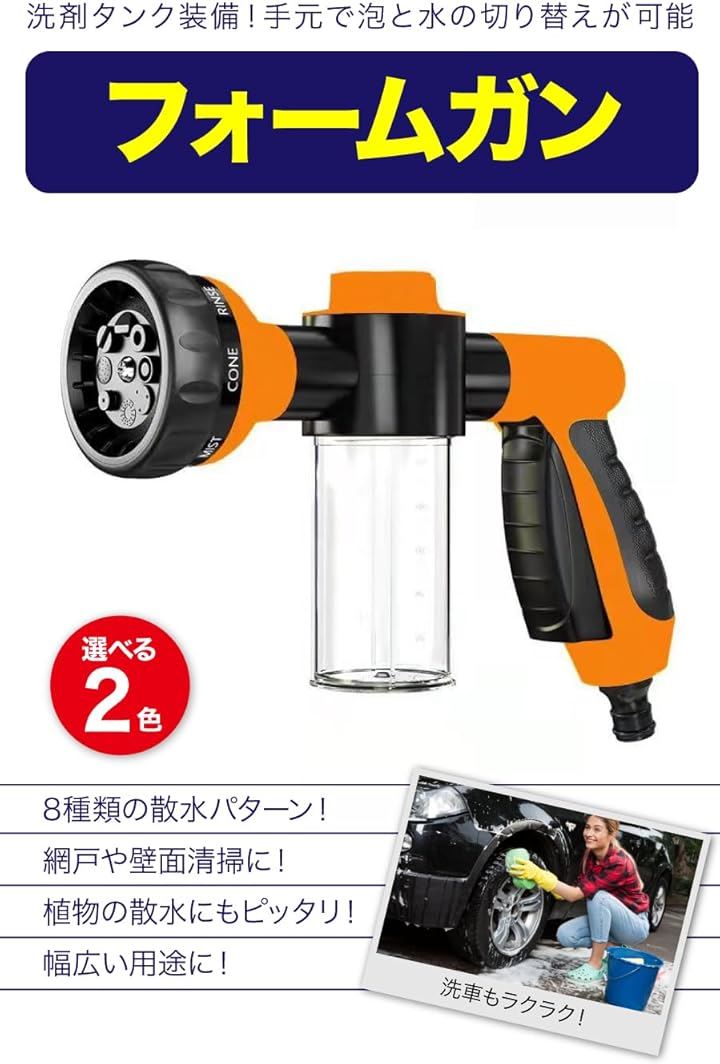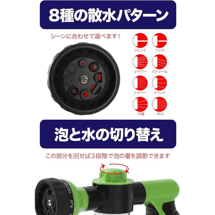 フォームガン シャワーヘッド ノズル 泡 ホース 洗車 自動車 散水 網戸 シャッター 掃除 草木 水やり