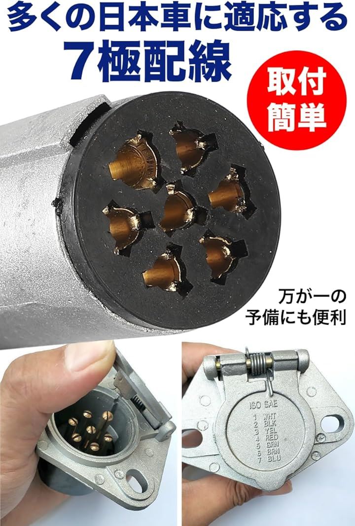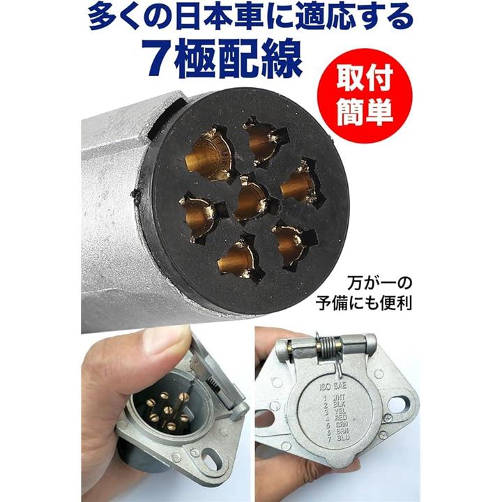 牽引配線 電極配線 プラグ ソケット 接合 トレーラー側 車両側 7極 牽引車