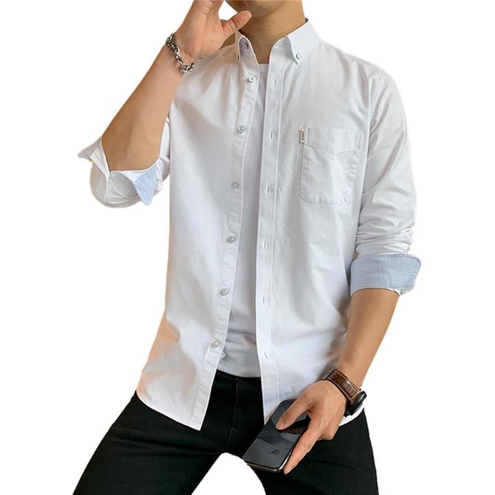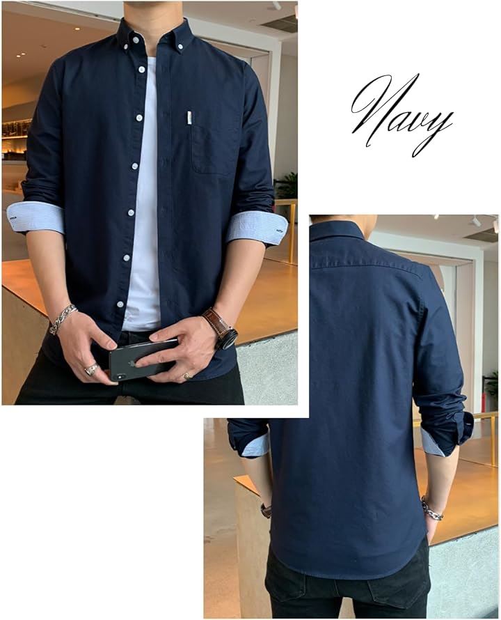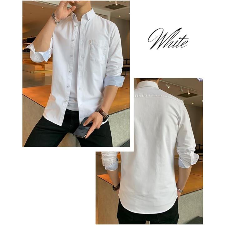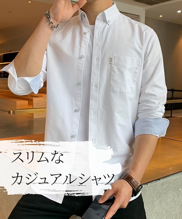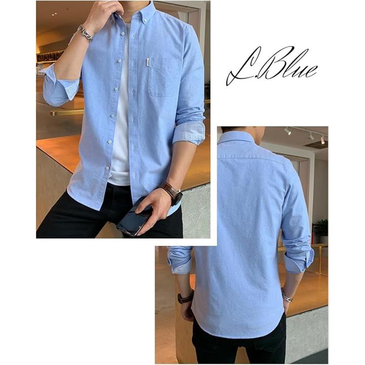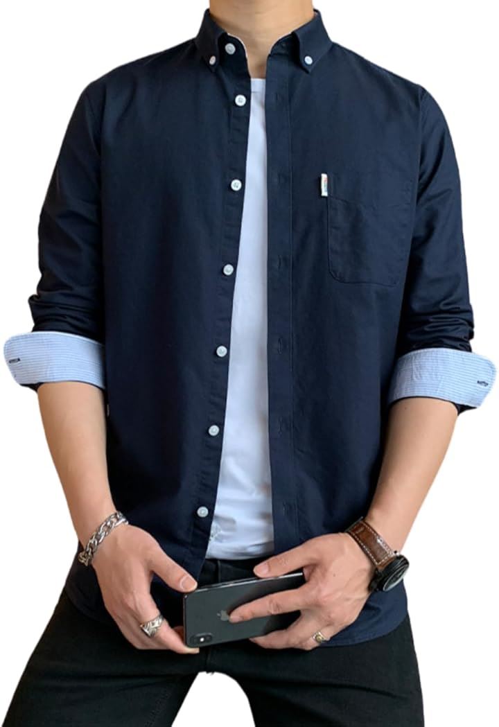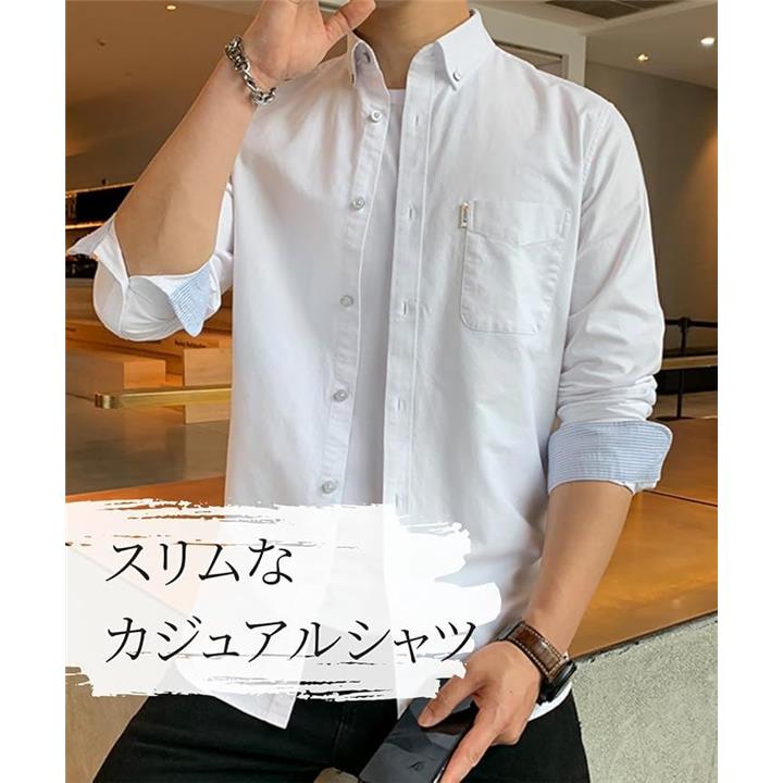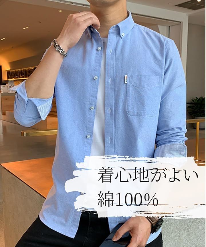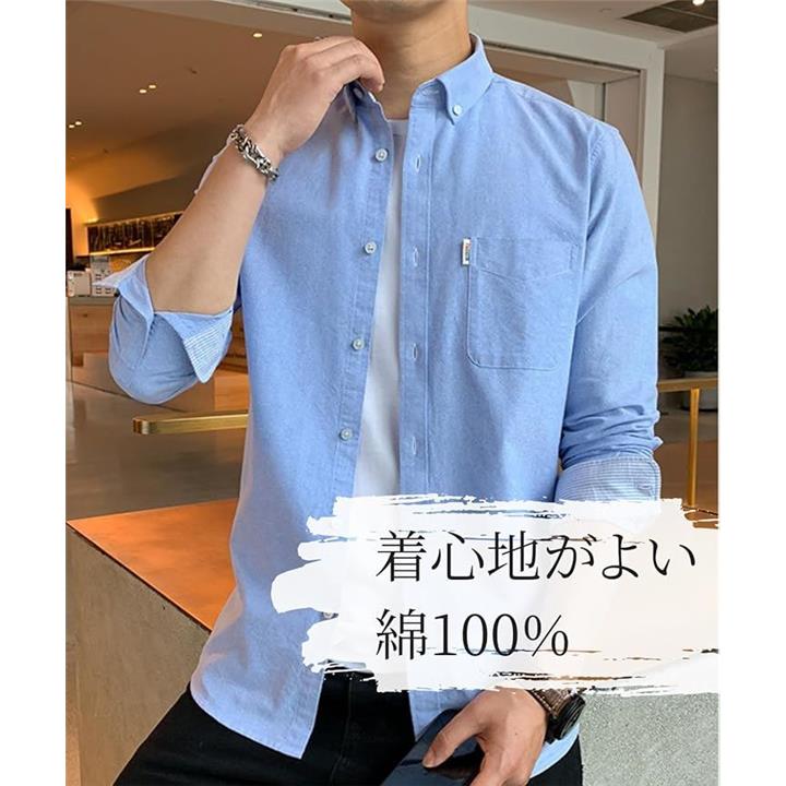 [レンロック] シャツ メンズ 秋服 カジュアル ワイシャツ ビジネス 長袖 オックスフォード ワークシャツ トップス 無地 綿100 袖デザイン 胸ポケット 秋 春 冬 |