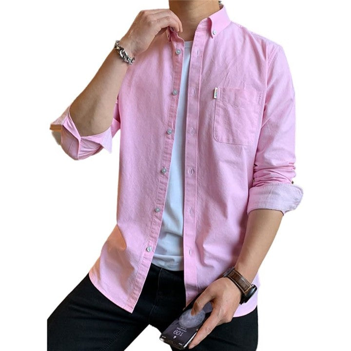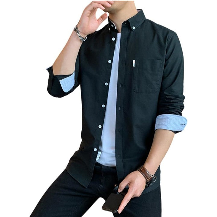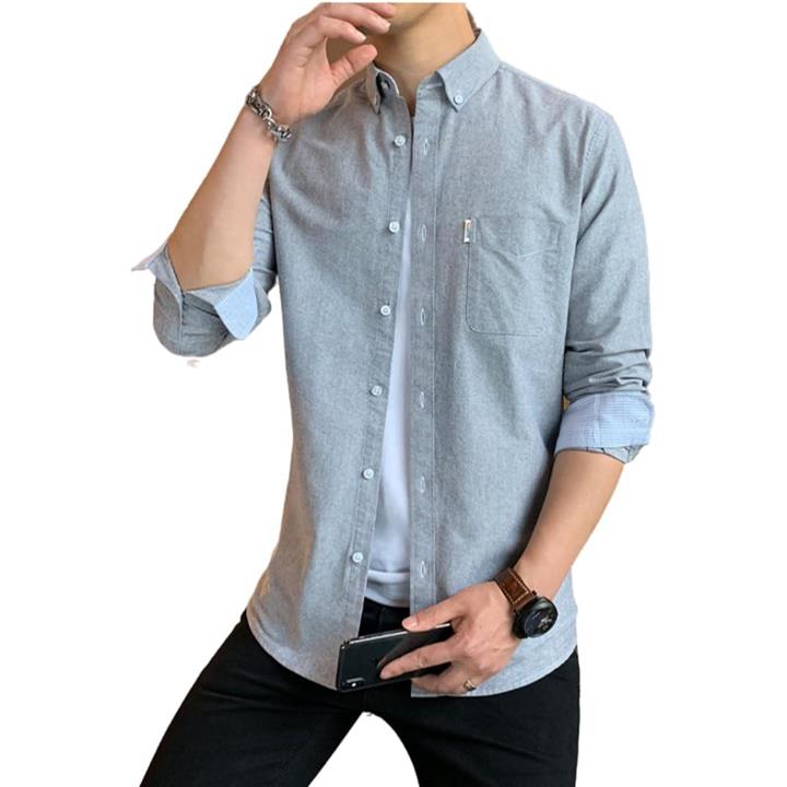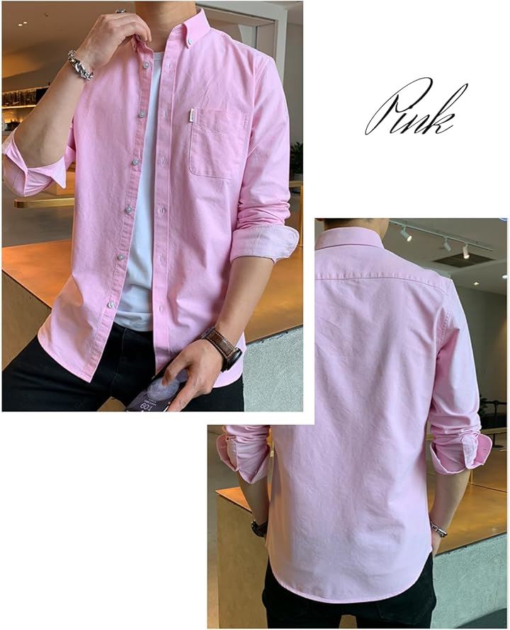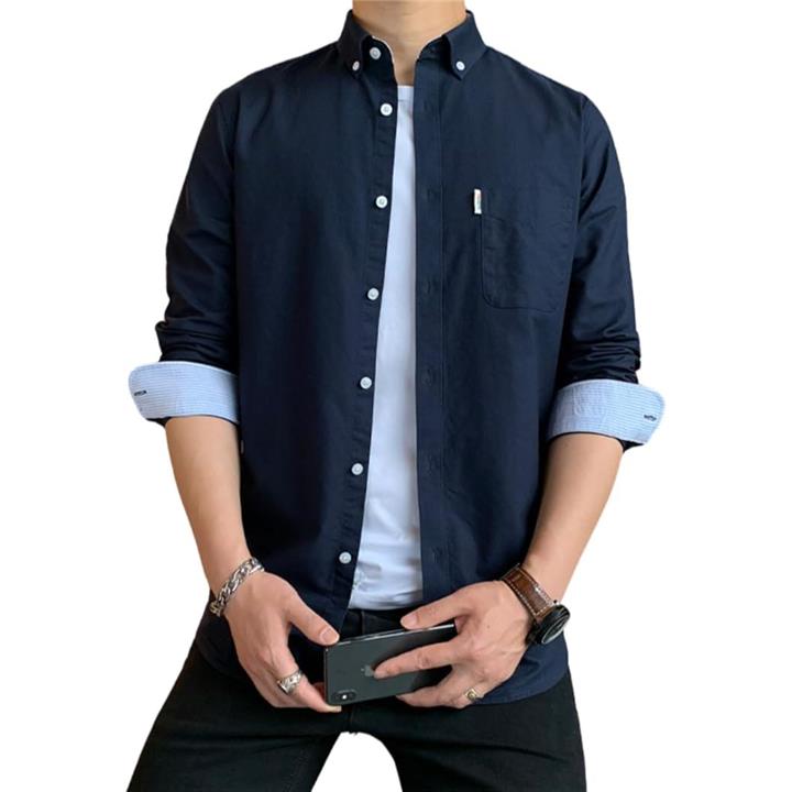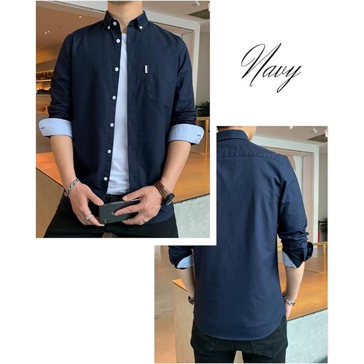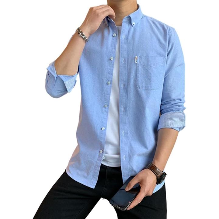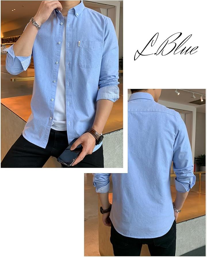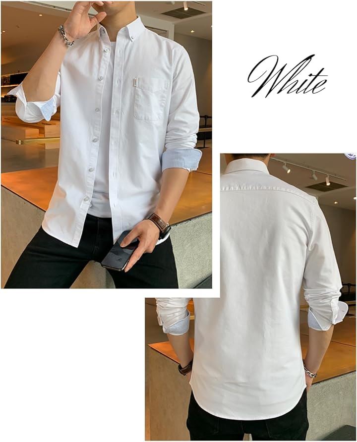 [レンロック] シャツ メンズ 秋服 カジュアル ワイシャツ ビジネス 長袖 オックスフォード ワークシャツ トップス 無地 綿100 袖デザイン 胸ポケット 秋 春 冬 |